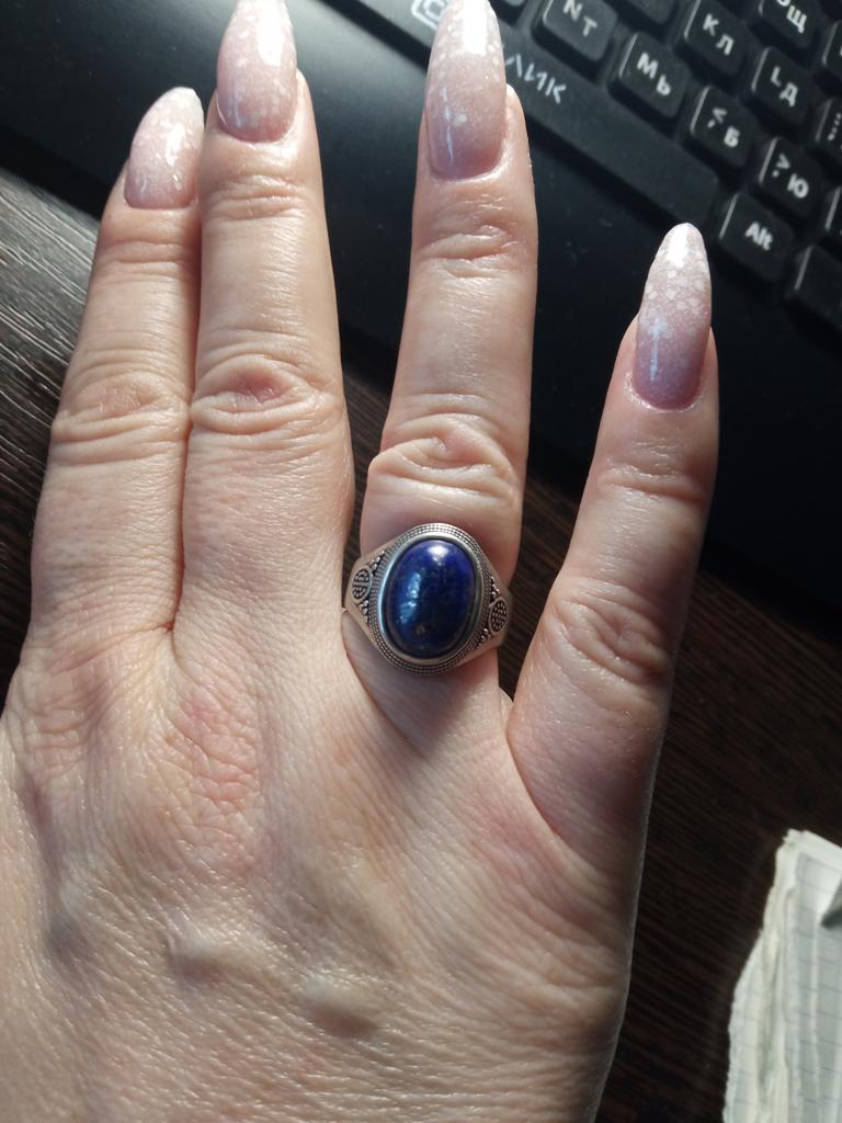 The ring is beautiful, the size is right. The color of the stone is not bright as in the photo and looks like artificial, but overall it looks not bad.