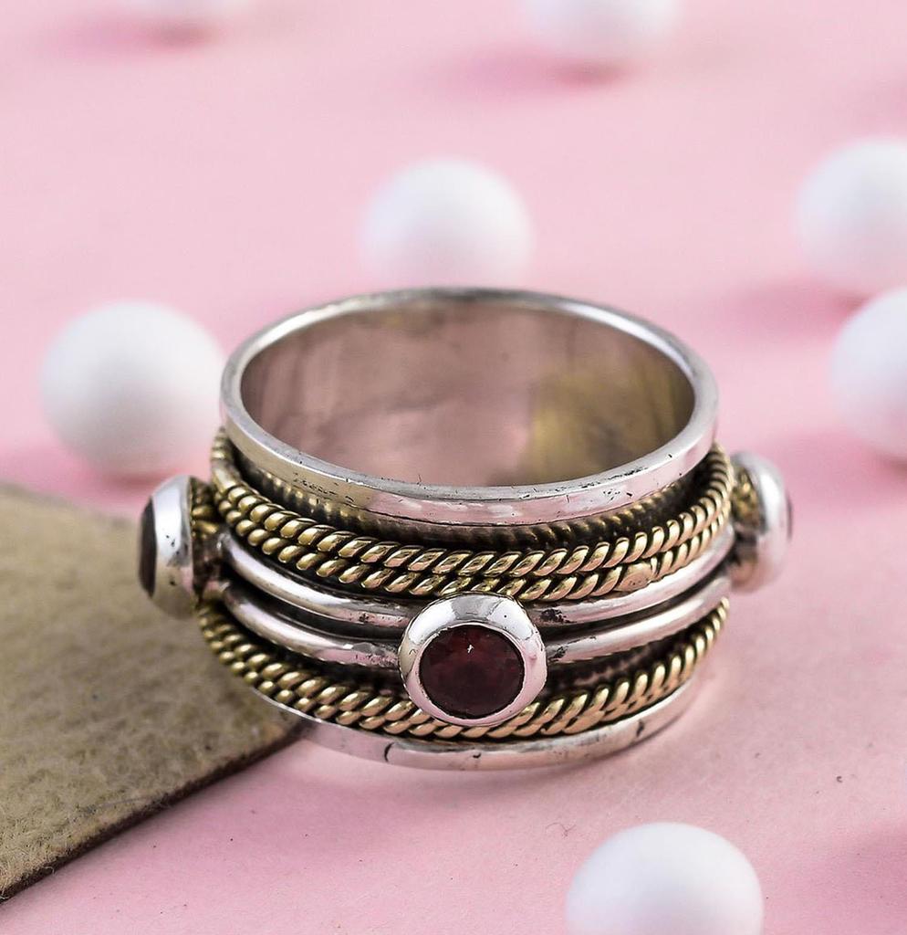 Ruby Gemstone Spinner Ring, 925 Sterling Silver Ring, Meditation Silver Band Ring, Fidget Anxiety Ring, Multi Spinning Ring, Christmas Gift