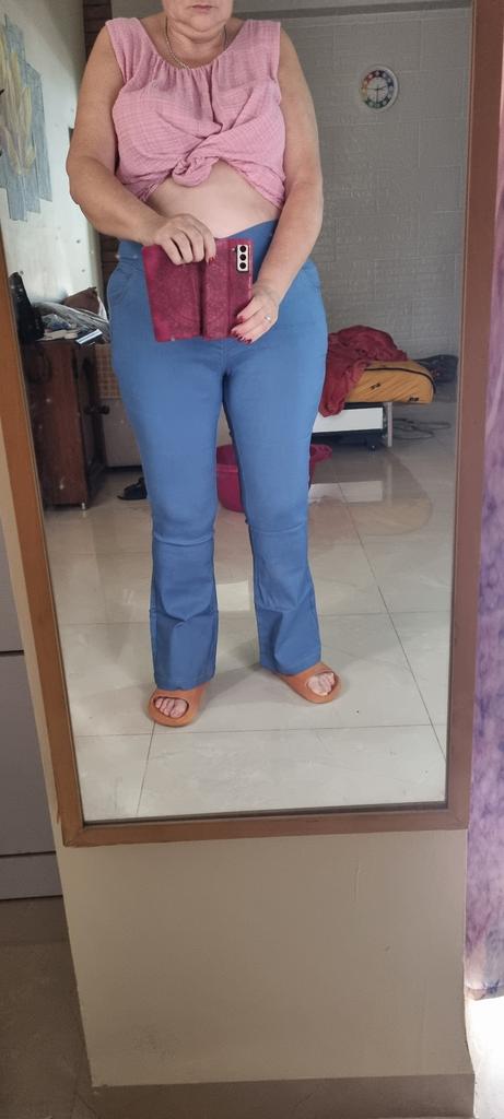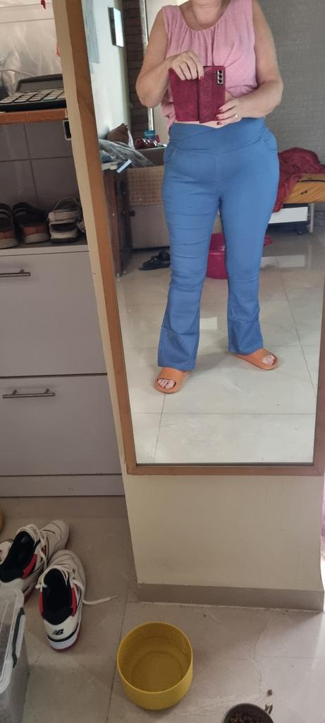 Featuring an elastic waist with cross-modification at the waist, these flared jeans offer a stylish and casual look that will make you feel elegant and charming whether you're doing sports or working. The loose legs provide a relaxed fit that adds to the overall comfort and versatility of these jeans.