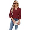 Spring and Summer Women's T-shirt V-neck Lace Seven-quarter Sleeve Jacquard Loose Long-sleeved Tops
