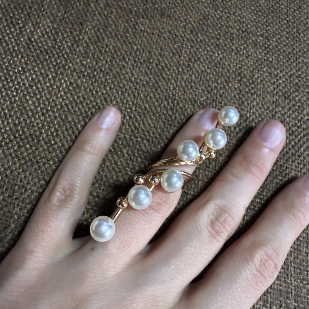 Faux Pearl Branch Open Ring High Gloss Exaggerated Personality Elegant Women Full Finger Ring Fashion Jewelry Accessories Gift