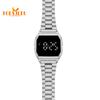 Electronic LED Display Watch: Battery Operated, Touchscreen, Square Steel Band - Perfect for Men, Women, and Students