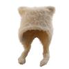 Stay warm and stylish with this plush earflap hat featuring a bear ear designed. Made from soft and comfortable plush material, it is perfect for cold weather.