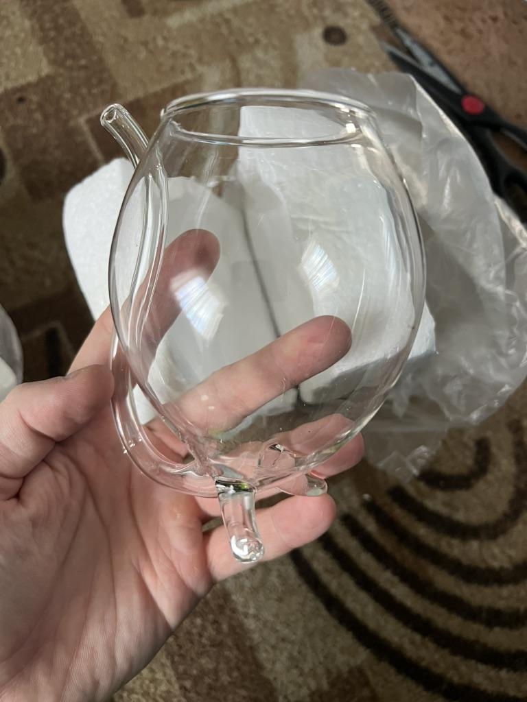 An unusual and pleasant in design glass. Thin, lightweight glass. To wash the glass straw, you need to additionally look for some thin, long, flexible brush.