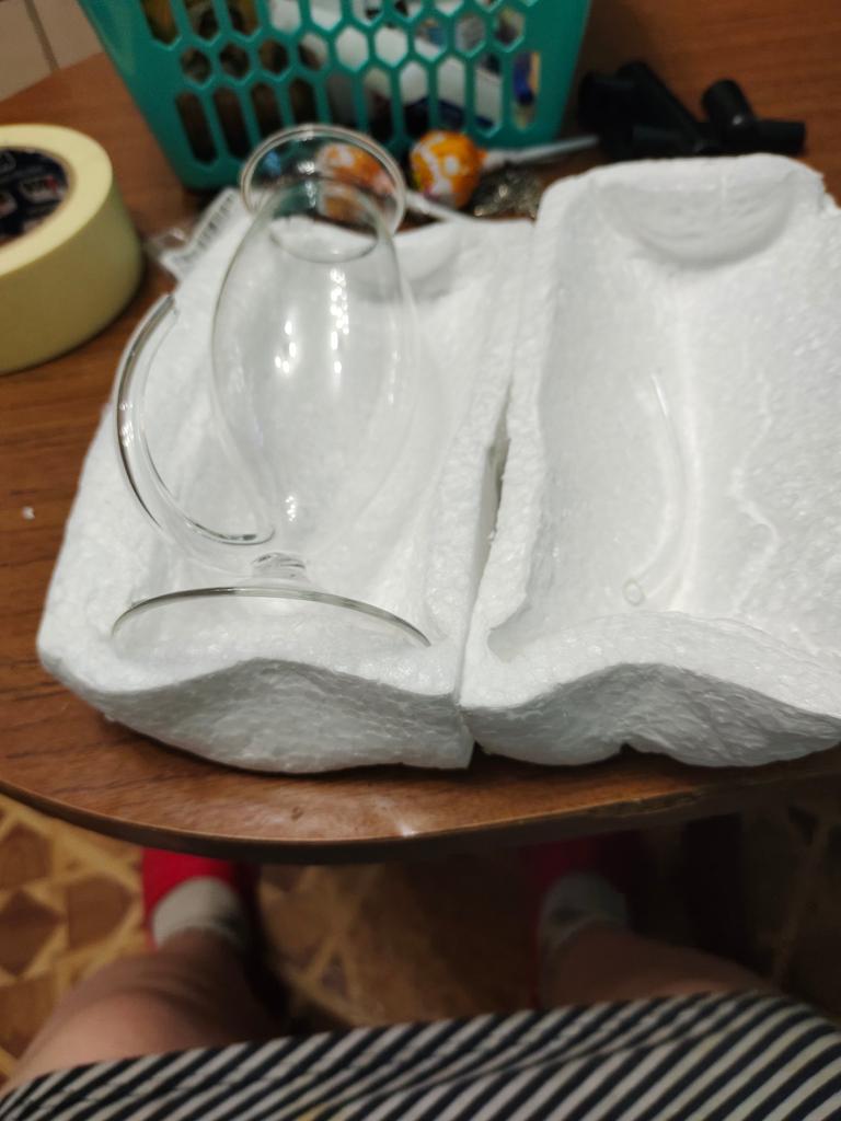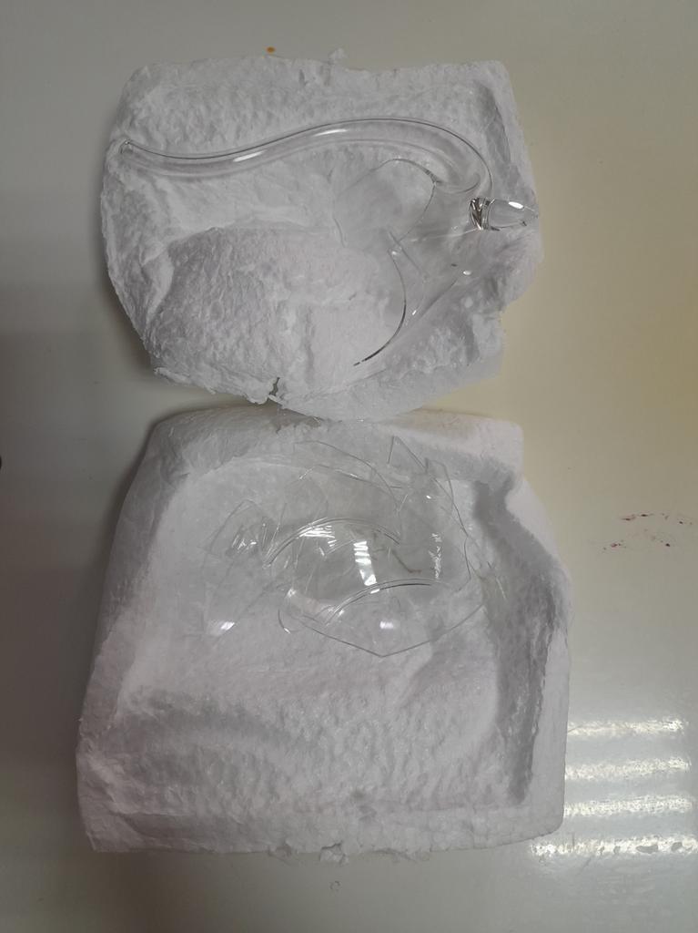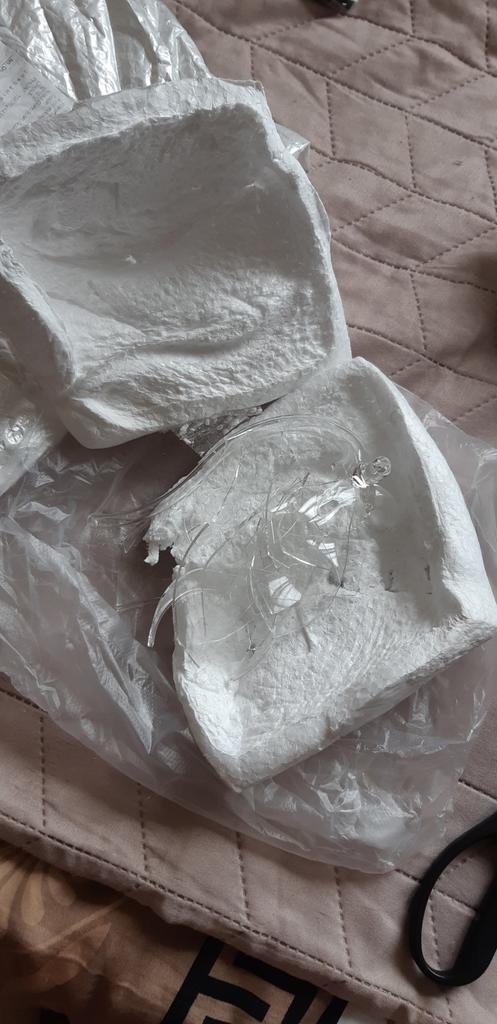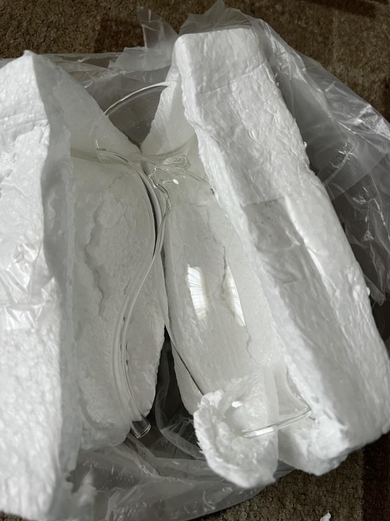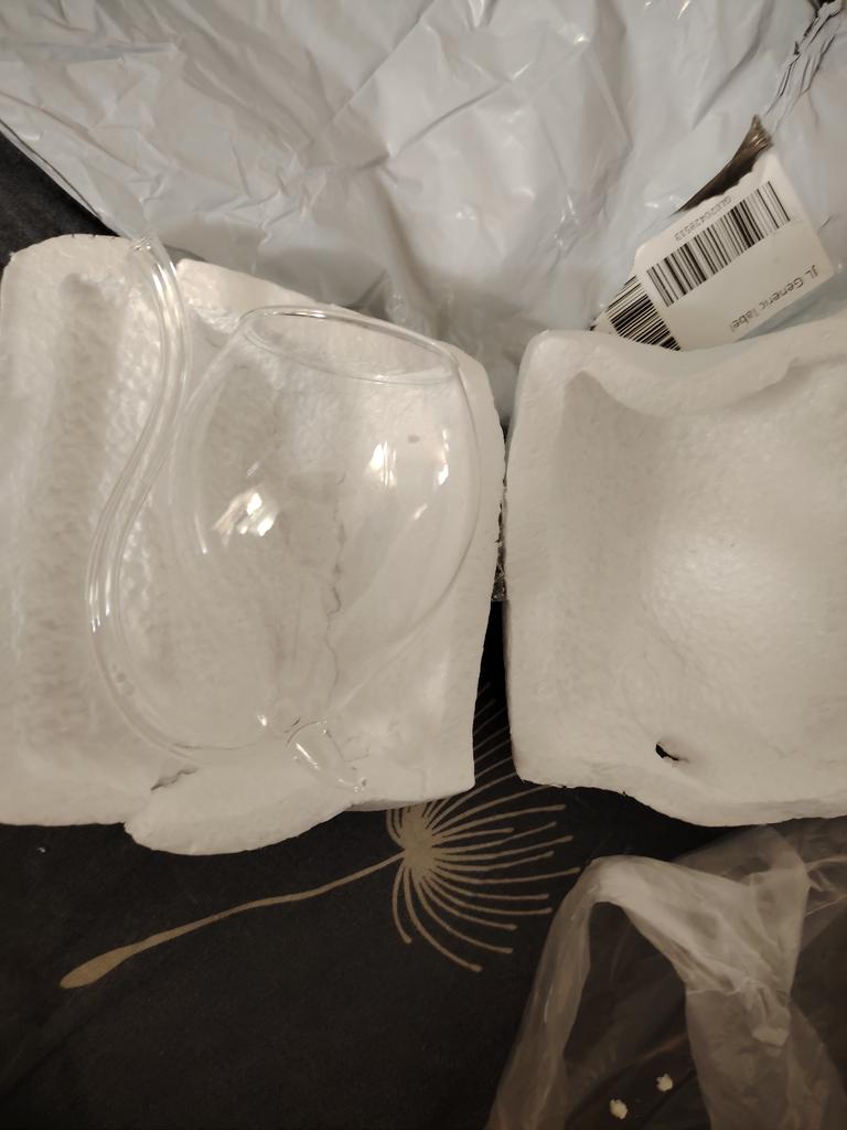 Surprisingly, the order arrived whole. The packaging is torn. The styrofoam is very crumbly.
