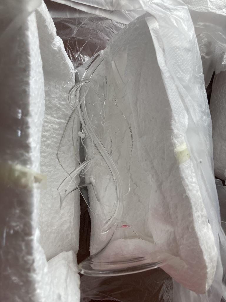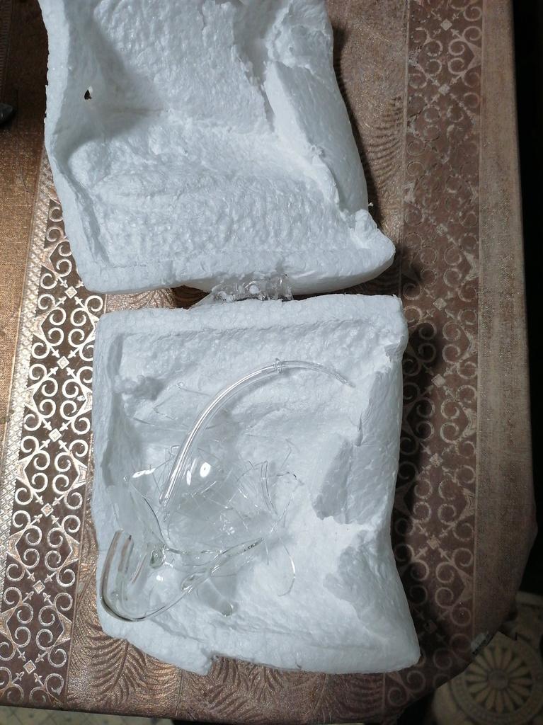 The glass arrived shattered to pieces. It was packaged simply in an envelope