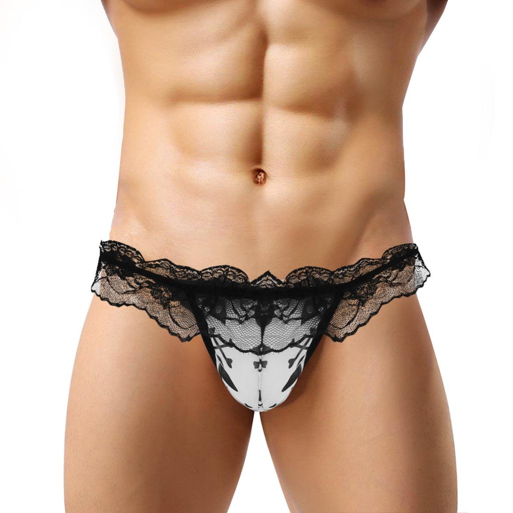 Sissy Thong Men Gay Underwear Low Rise Lace Briefs Thong Bikini