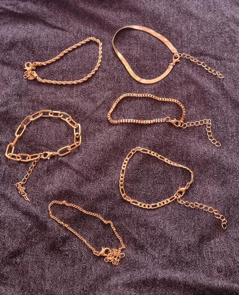 Cool bracelets. You can't tell them apart from gold. Better not to get them wet, the color changes.