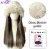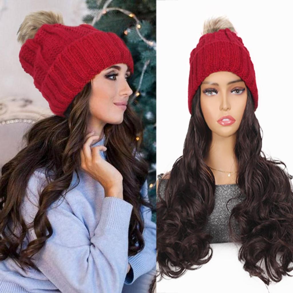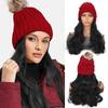 Red Hat Wig for Women Knitted Warm Wavy Curly Long Hat Wig Synthetic Natural Fake Hair