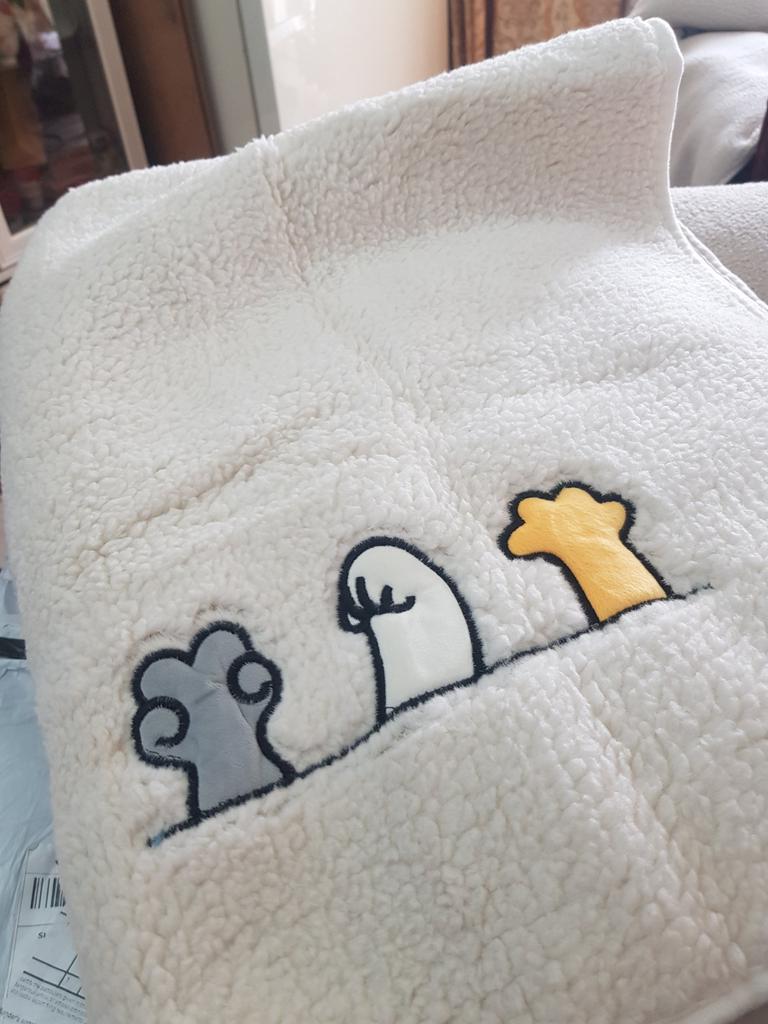 I ordered another one, this is grey, you can see it in the photo. The white one is softer and fluffier, even thicker. But I also like the grey one.