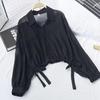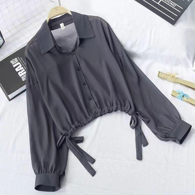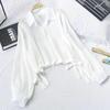 Japanese Style Matte Loose and Slimming Design Shirt Top Women's Early Autumn Flip Collar Long Sleeved Cardigan Blouse