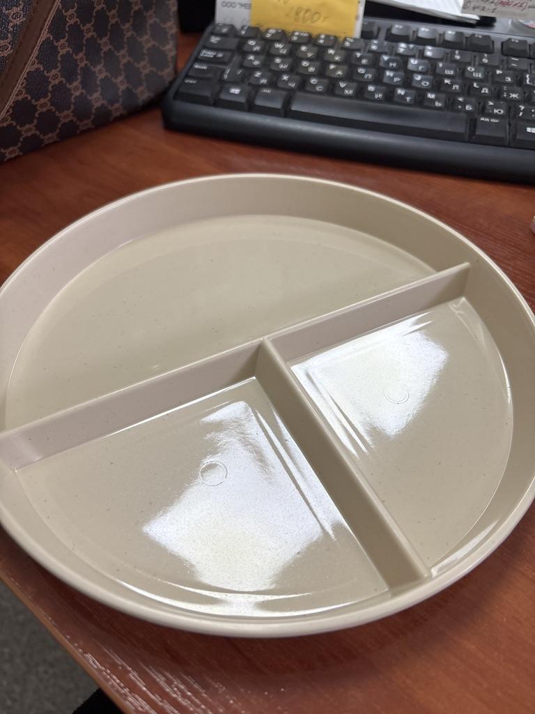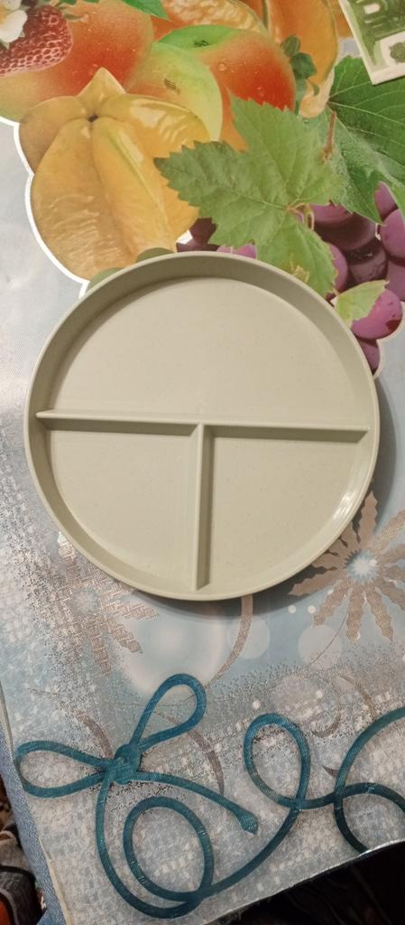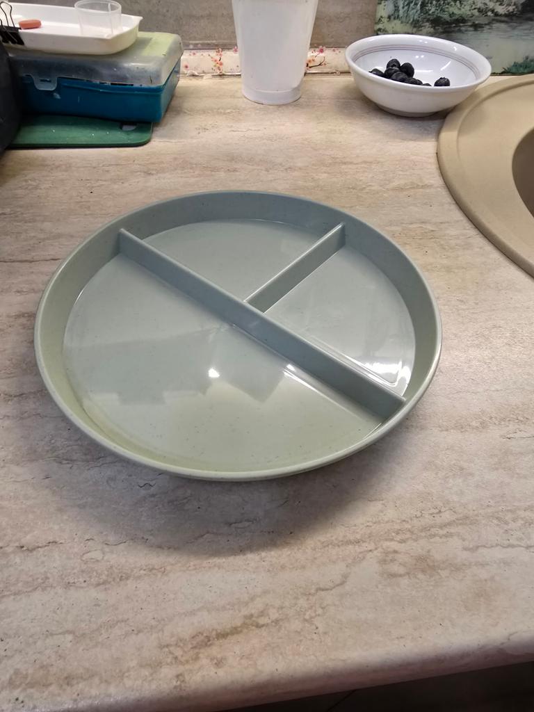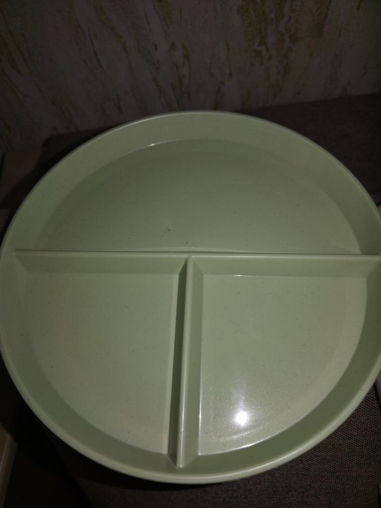 Excellent plate with a divider, large, color is a delicate green. Thank you