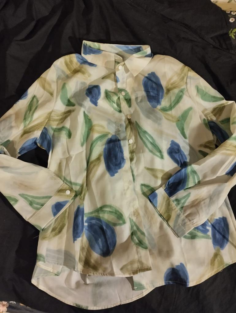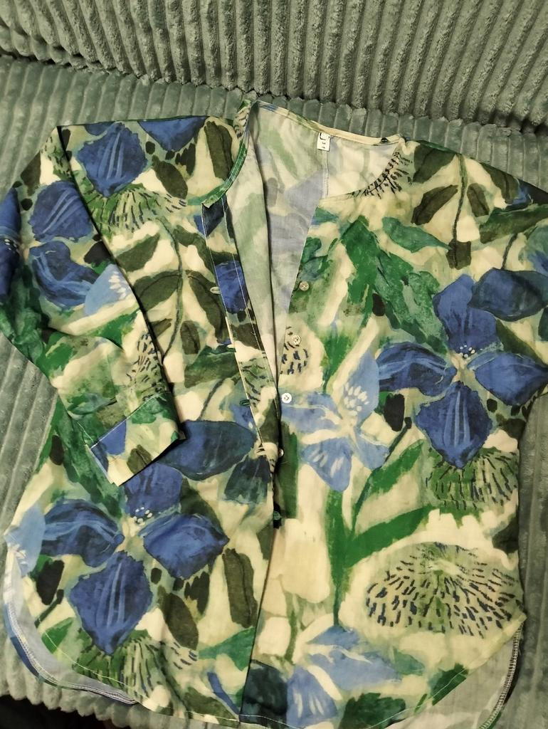Nice, light, summer blouse, size 46, loose, excellent. The quality is good, the color scheme is very nice. Thank you