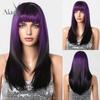 ALAN EATON Light To Dark Brown Layered Wig Long Straight Synthetic Wig Ombre Brown Wig with Bangs for Women for Daily Party Hair