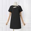 VONDA Ladies Summer Round Neck Short Sleeve Slit Pearl Button Straight Solid Colour Short Dresses