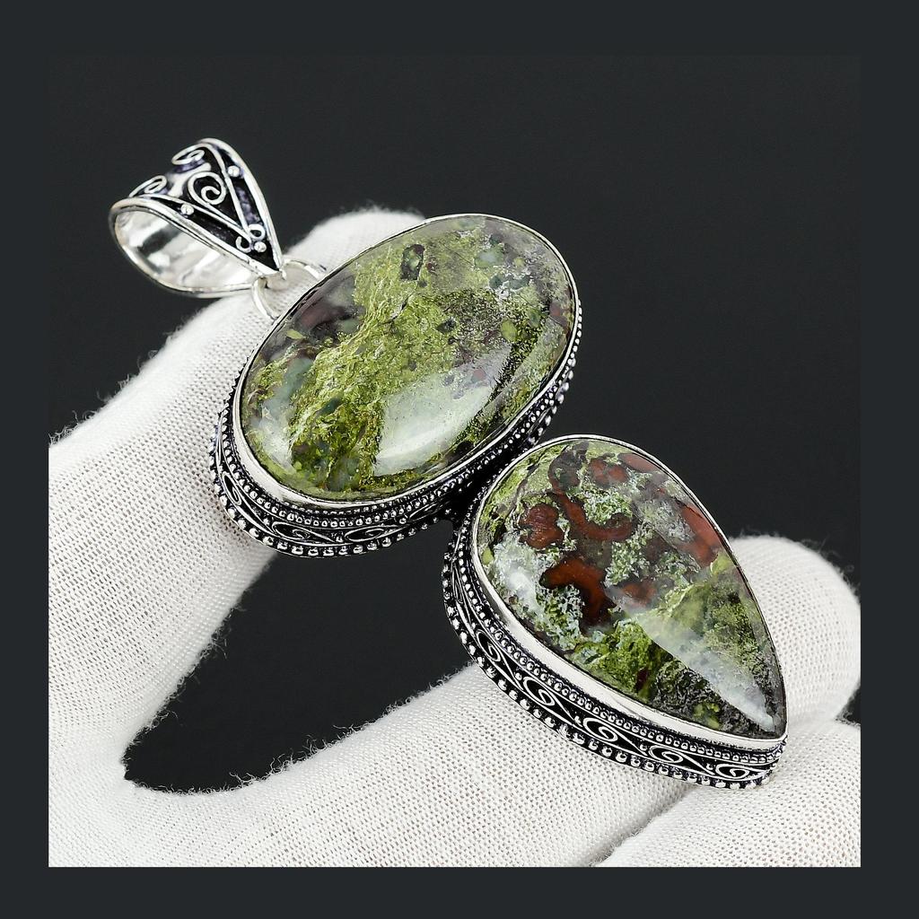 Dragon Blood Jasper Gemstone Handmade 925 Sterling Silver Jewelry Pendant Double Stone Antique Pendant Natural Dragon Blood Jasper Pendant For Gifts