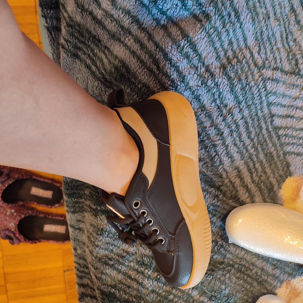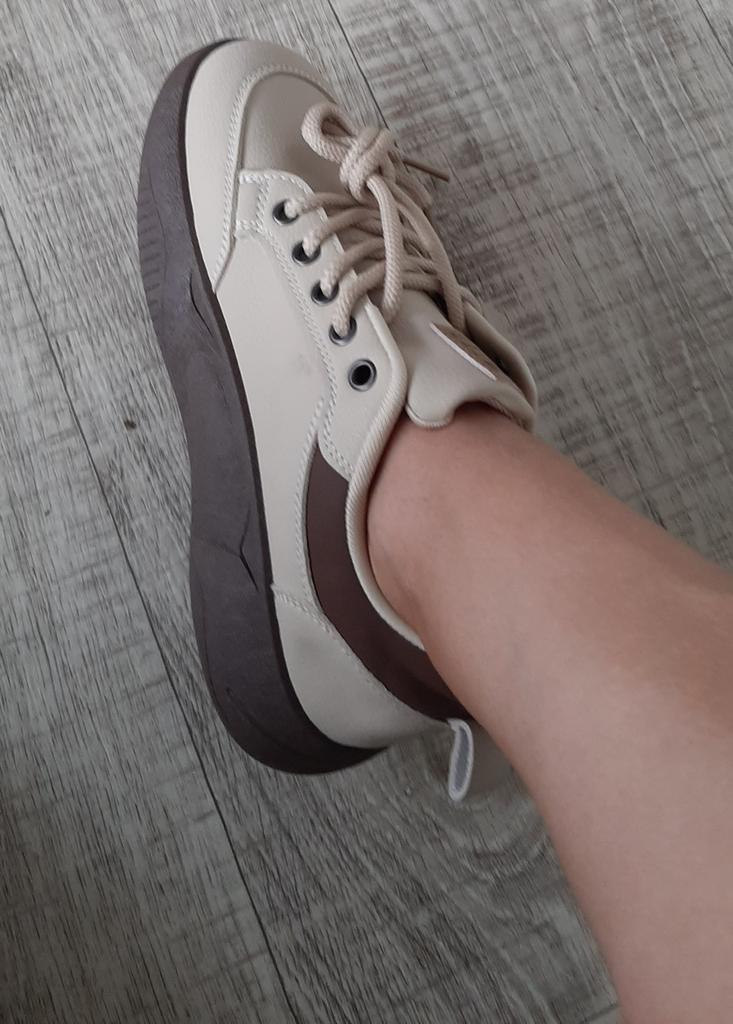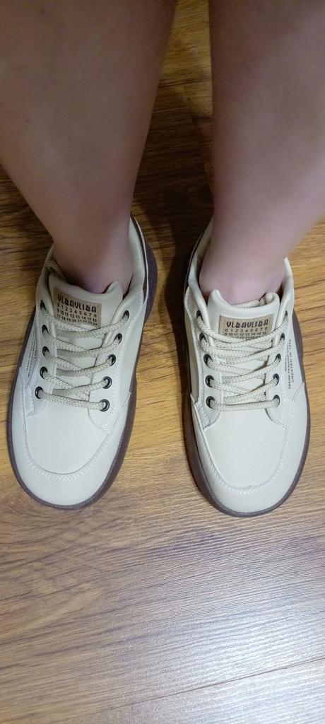 Comfortable, nice sneakers, comfortable inside, cute...for size 37 I bought 38, not too tight, good...