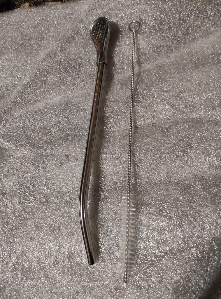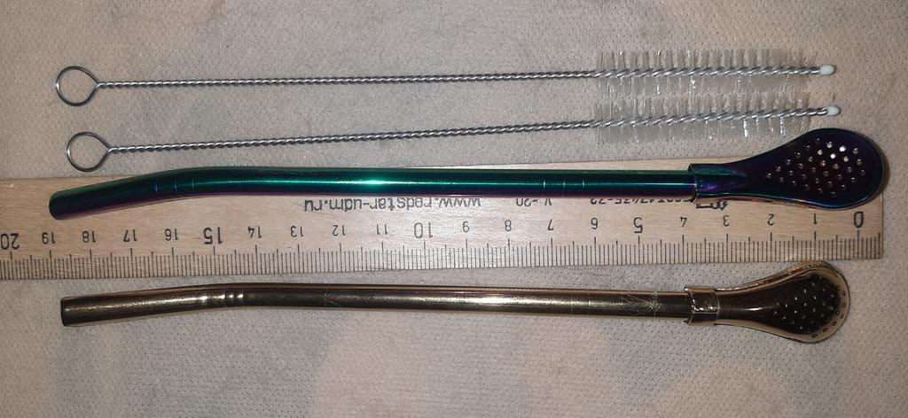 Tea tube. Made from stainless steel. The quality is excellent. Comes with a straw cleaning brush. Suitable for tea, coffee, lemonade, as well as for filtering juice from pulp or tea from leaves. Length 19 cm. Recommend.