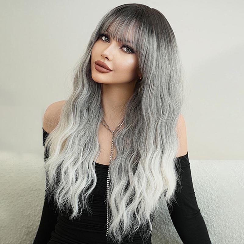 New Ladies Wig Simulation Wig 65cm Hair Gray Wig Big Wave Wig Full Headgear Rose Hair Net Headdress Beauty Decoration Wig