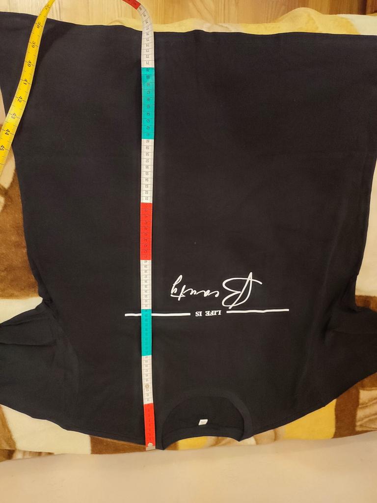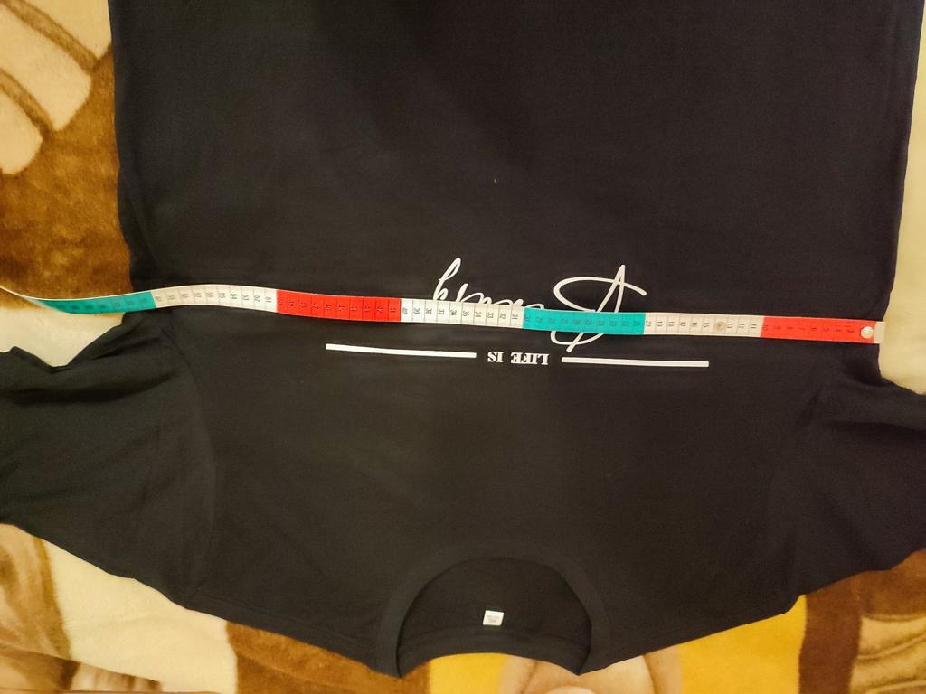 The orange t-shirt size 4XL that I purchased corresponds to the seller's stated size chart, namely: Chest: 126 cm, shoulders: 53.5 cm, length: 78 cm. The t-shirt does not indicate either the manufacturer or the fabric composition. But it is sewn very qualitatively, feels predominantly cotton, not synthetic. After washing, the t-shirt shrank - the chest circumference became 120 cm and also shorter
