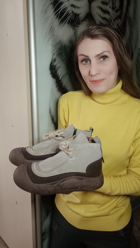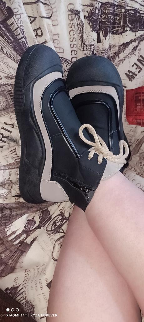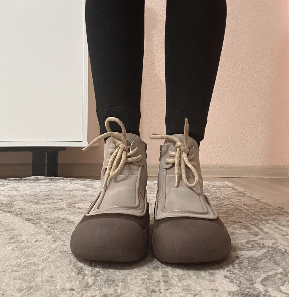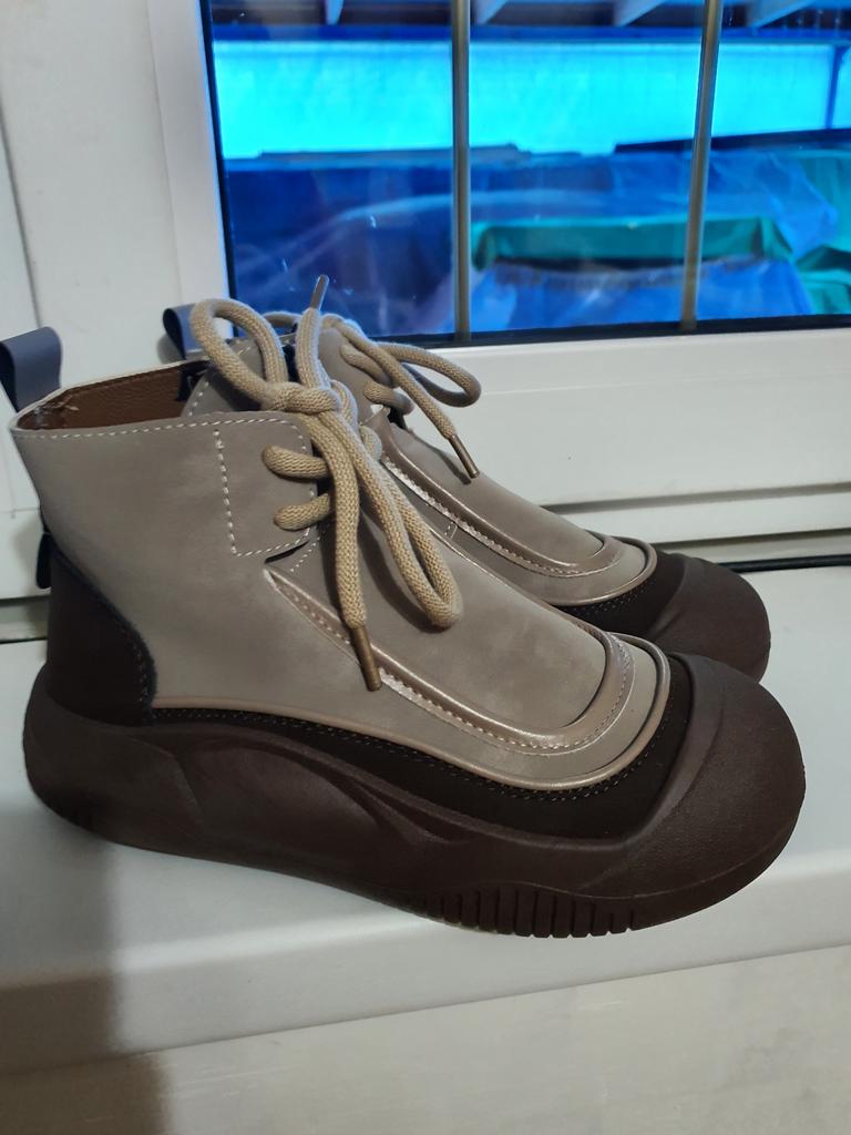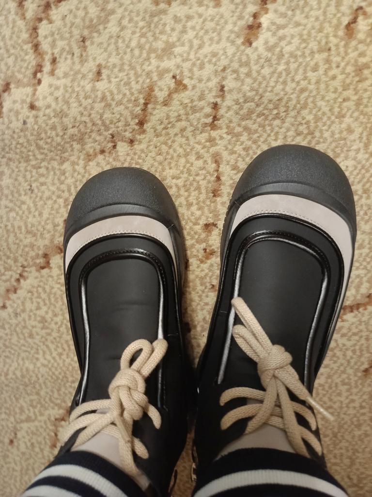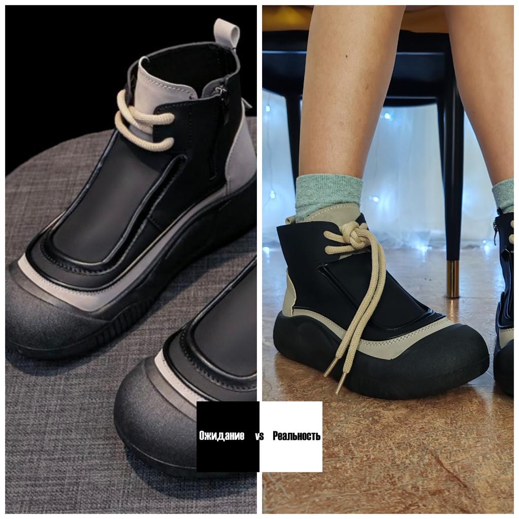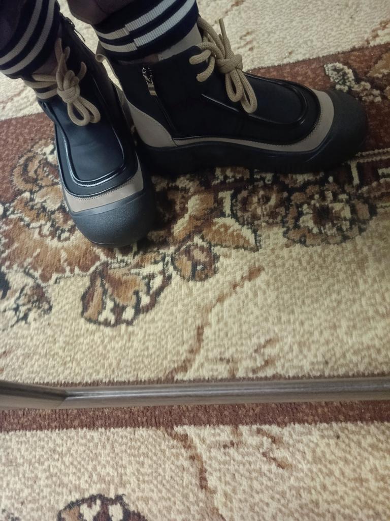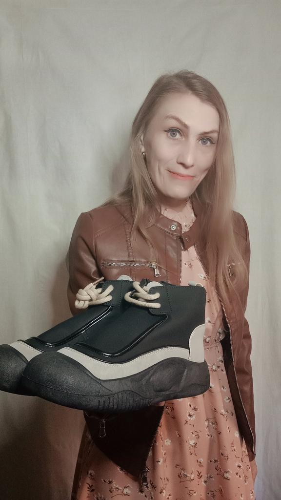 Shoes in which you can walk in wet weather. Stylish and practical . Designed for autumn and spring. They are pleasant to the touch and the feet are comfortable in them. I especially recommend taking a closer look at these shoes for those who have dogs. If the weather is wet, these are great shoes because your feet will be dry. I took the size 36 for my 36. If you have a wide foot, most likely the leg will be difficult to enter. There is a lacing, but it will not stretch very much. They fasten on a snake on the side. The quality is excellent ♥️ I liked the design, unusual 👍