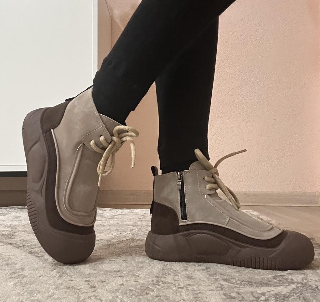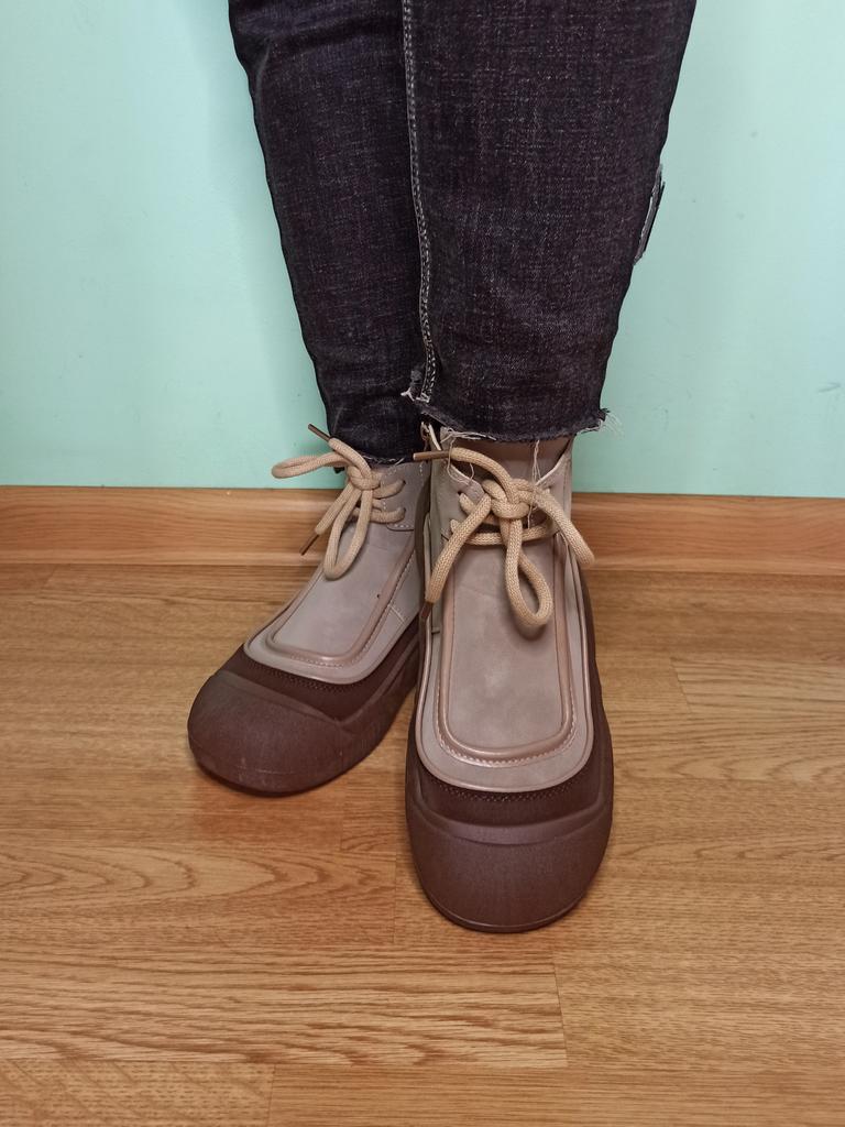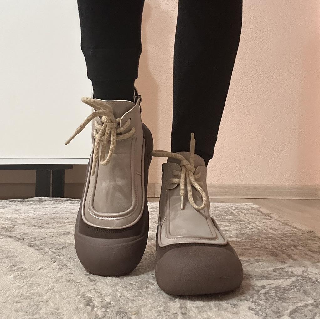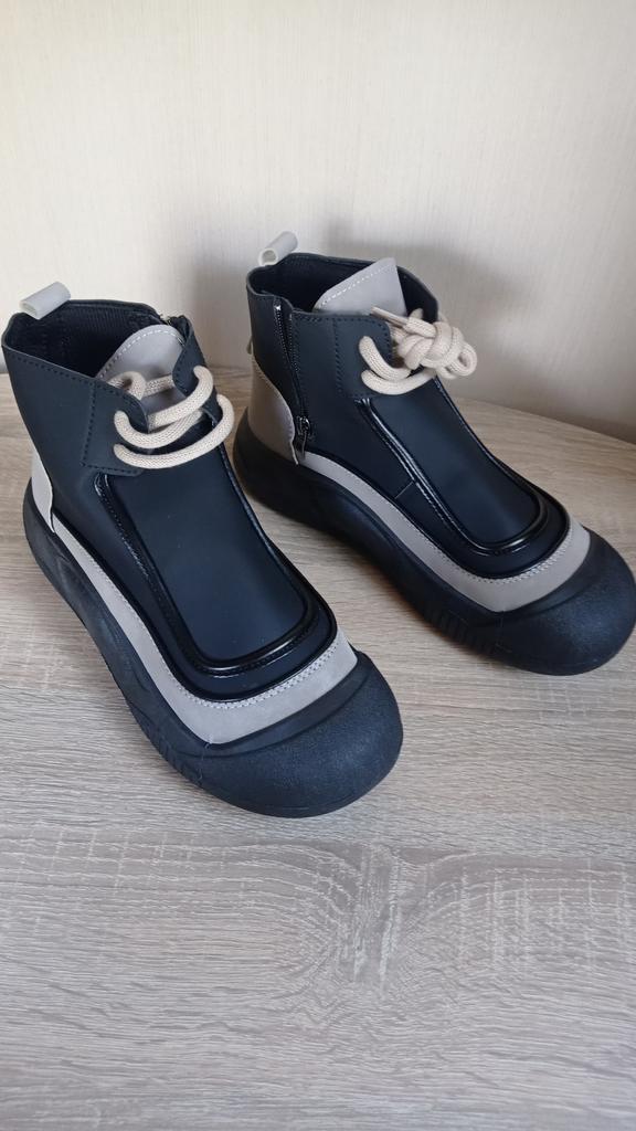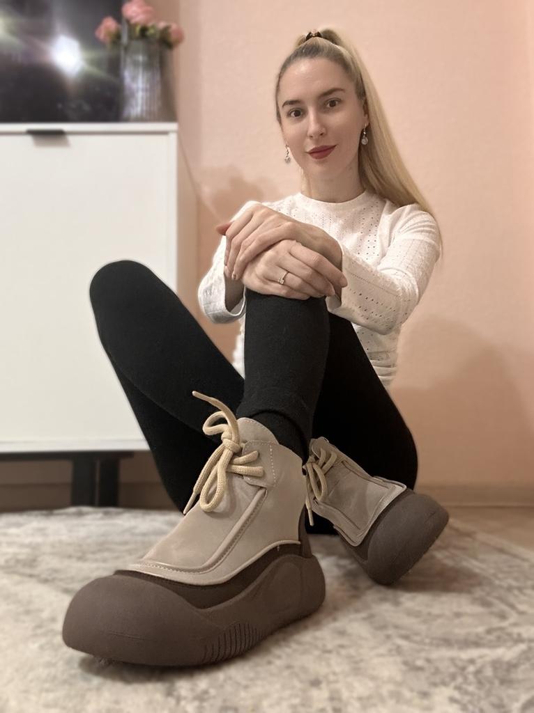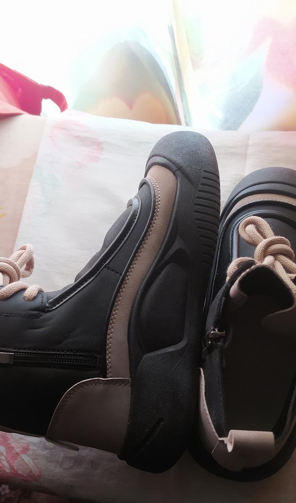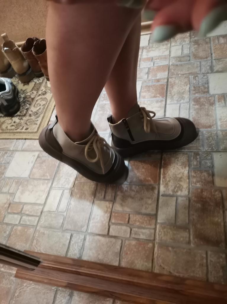 Shoes in which you can walk in wet weather. Stylish and practical . Designed for autumn and spring. They are pleasant to the touch and the feet are comfortable in them. I especially recommend taking a closer look at these shoes for those who have dogs. If the weather is wet, these are great shoes because your feet will be dry. I took the size 36 for my 36. If you have a wide foot, most likely the leg will be difficult to enter. There is a lacing, but it will not stretch very much. They fasten on a snake on the side. The quality is excellent ♥️ I liked the design, unusual 👍