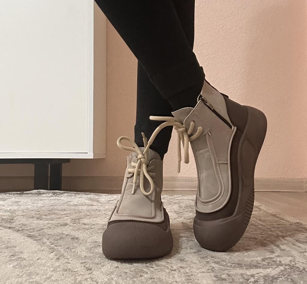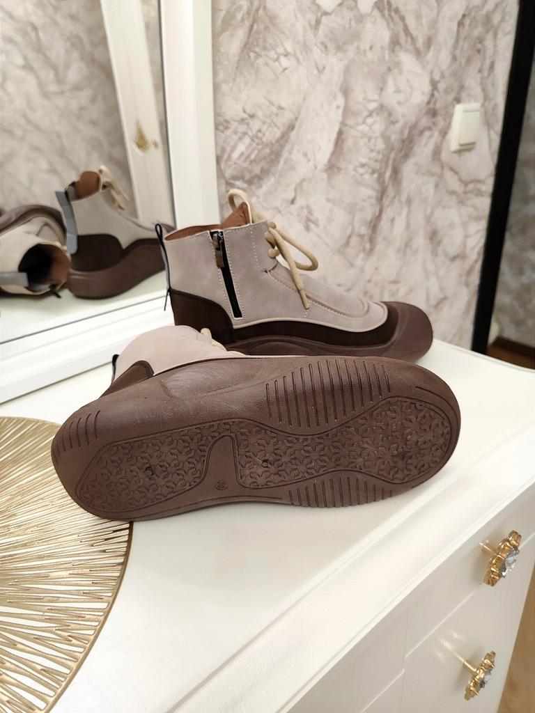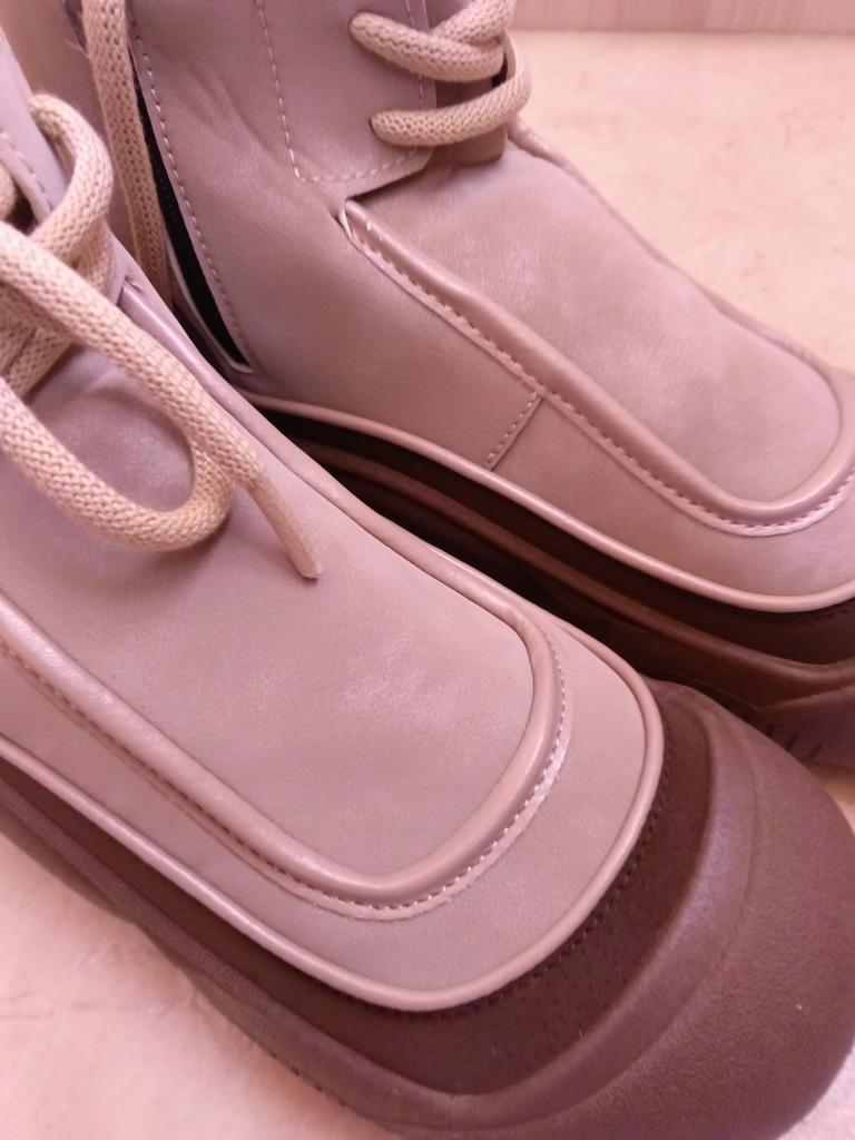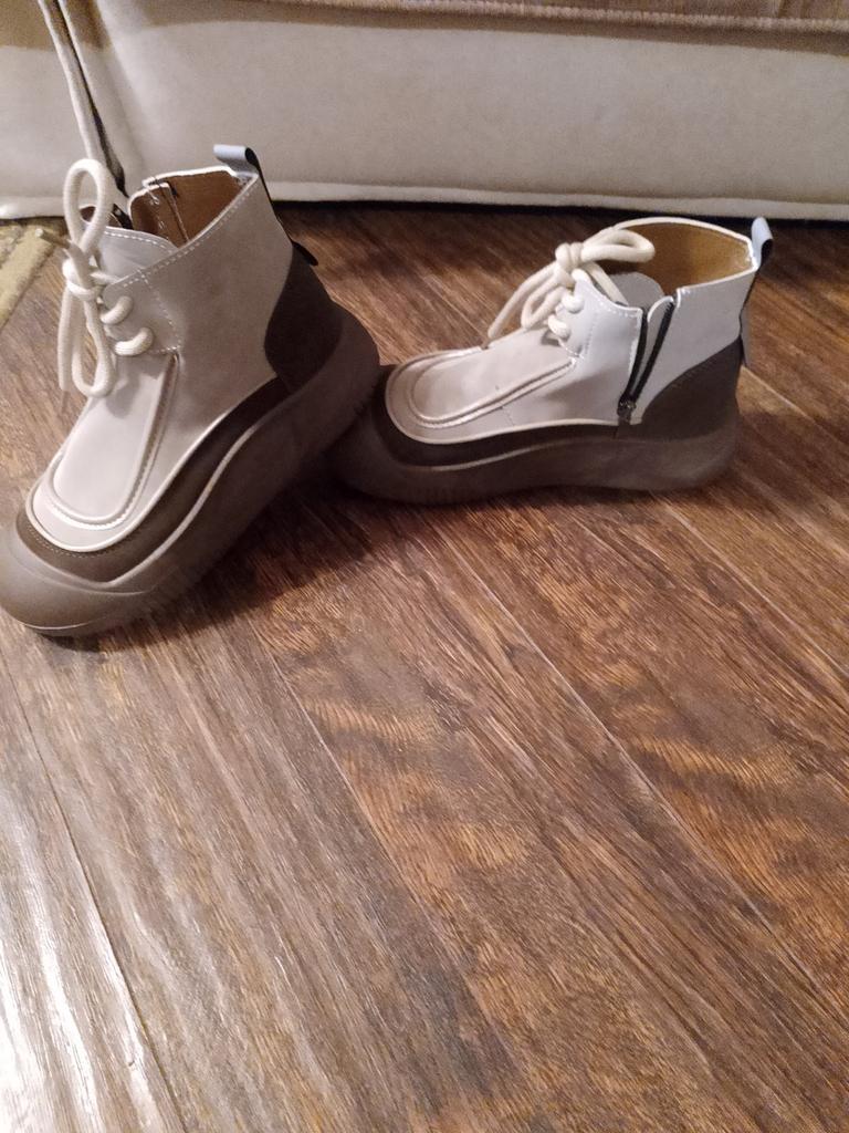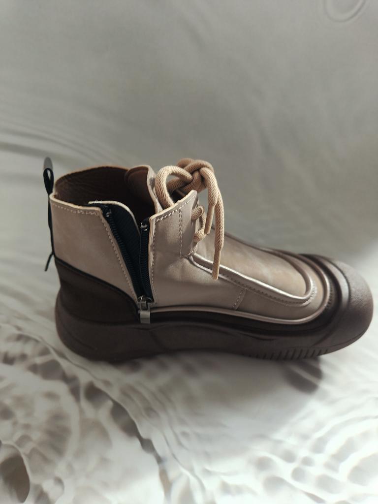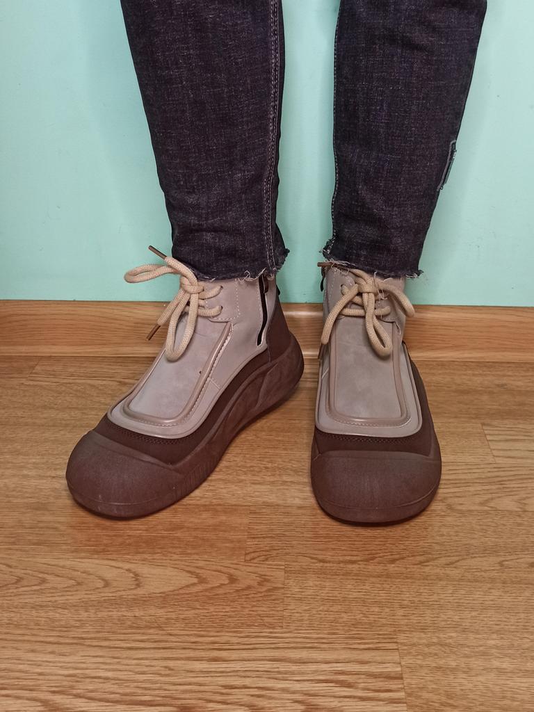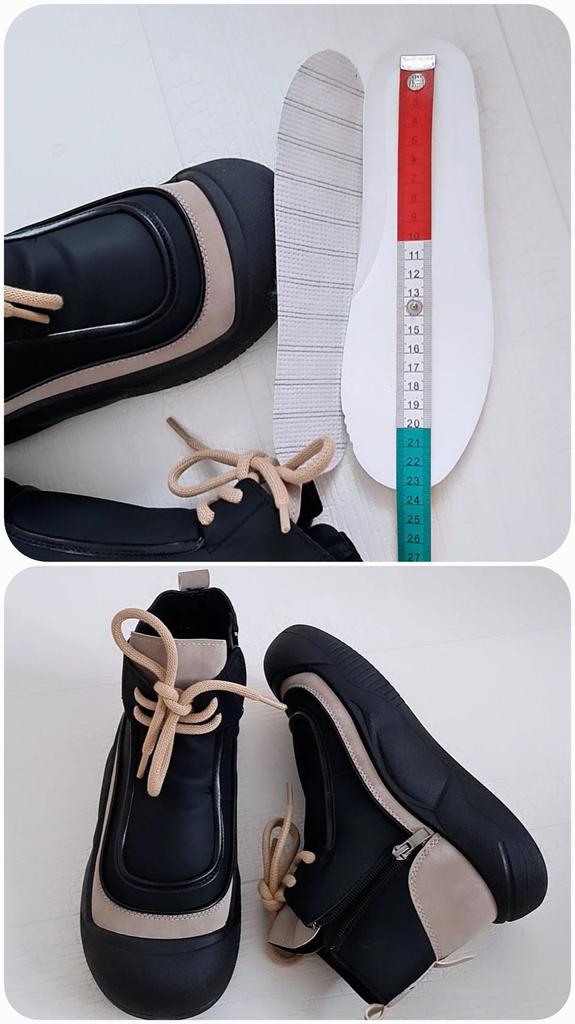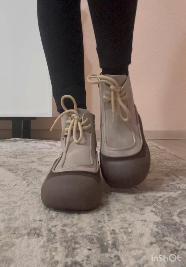 Shoes in which you can walk in wet weather. Stylish and practical . Designed for autumn and spring. They are pleasant to the touch and the feet are comfortable in them. I especially recommend taking a closer look at these shoes for those who have dogs. If the weather is wet, these are great shoes because your feet will be dry. I took the size 36 for my 36. If you have a wide foot, most likely the leg will be difficult to enter. There is a lacing, but it will not stretch very much. They fasten on a snake on the side. The quality is excellent ♥️ I liked the design, unusual 👍