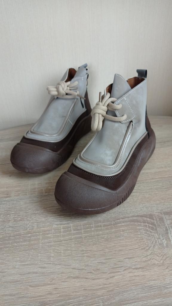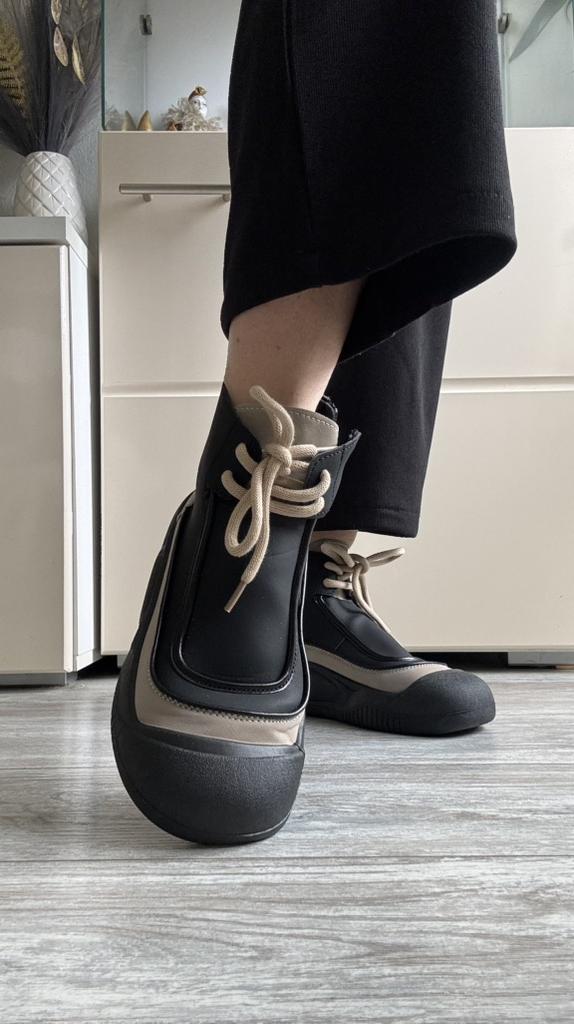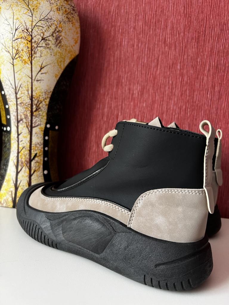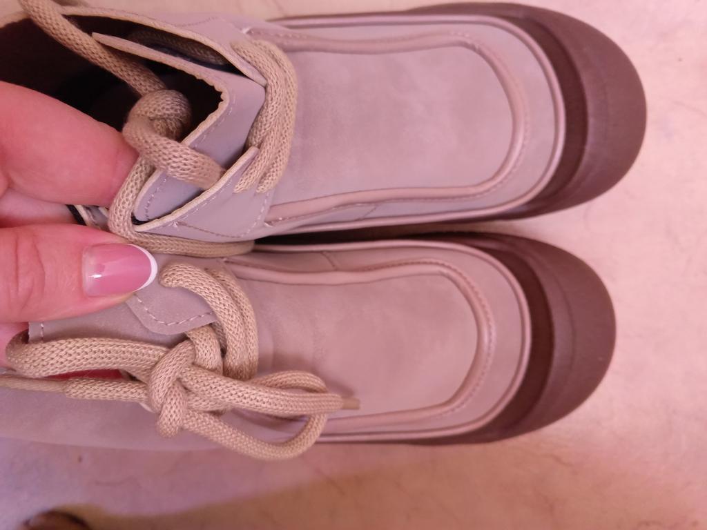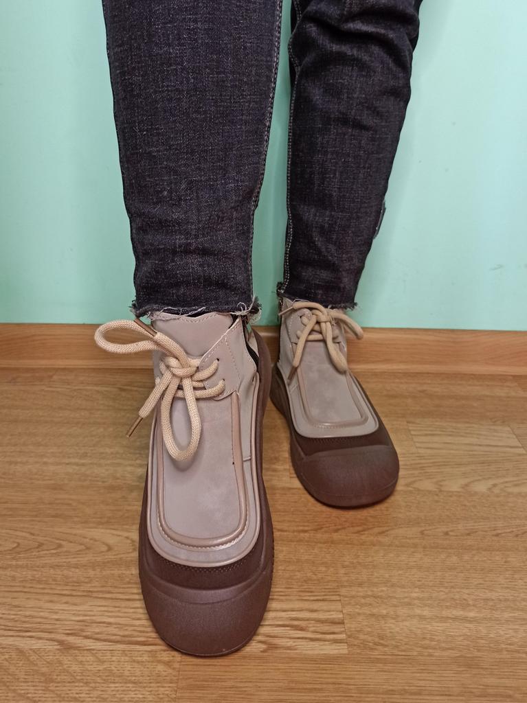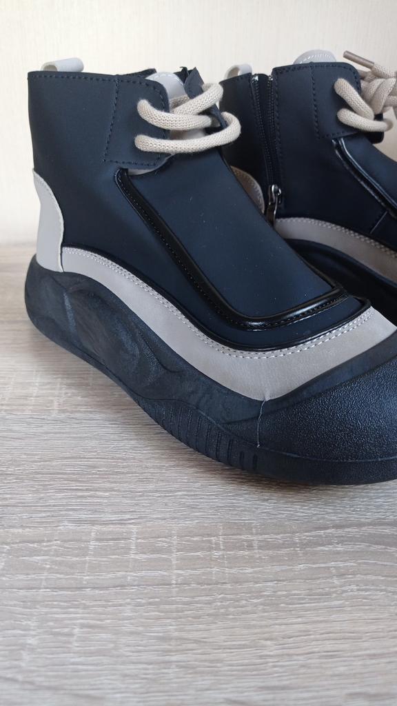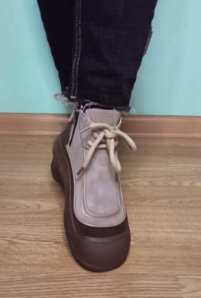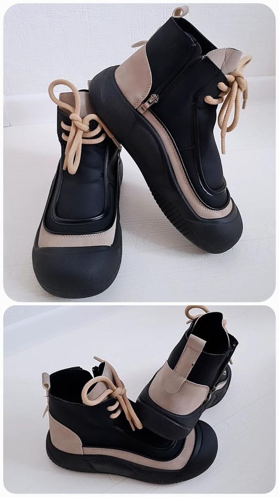 Shoes in which you can walk in wet weather. Stylish and practical . Designed for autumn and spring. They are pleasant to the touch and the feet are comfortable in them. I especially recommend taking a closer look at these shoes for those who have dogs. If the weather is wet, these are great shoes because your feet will be dry. I took the size 36 for my 36. If you have a wide foot, most likely the leg will be difficult to enter. There is a lacing, but it will not stretch very much. They fasten on a snake on the side. The quality is excellent ♥️ I liked the design, unusual 👍