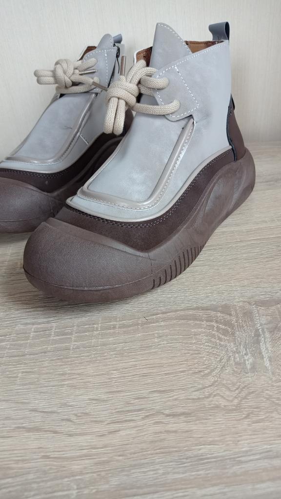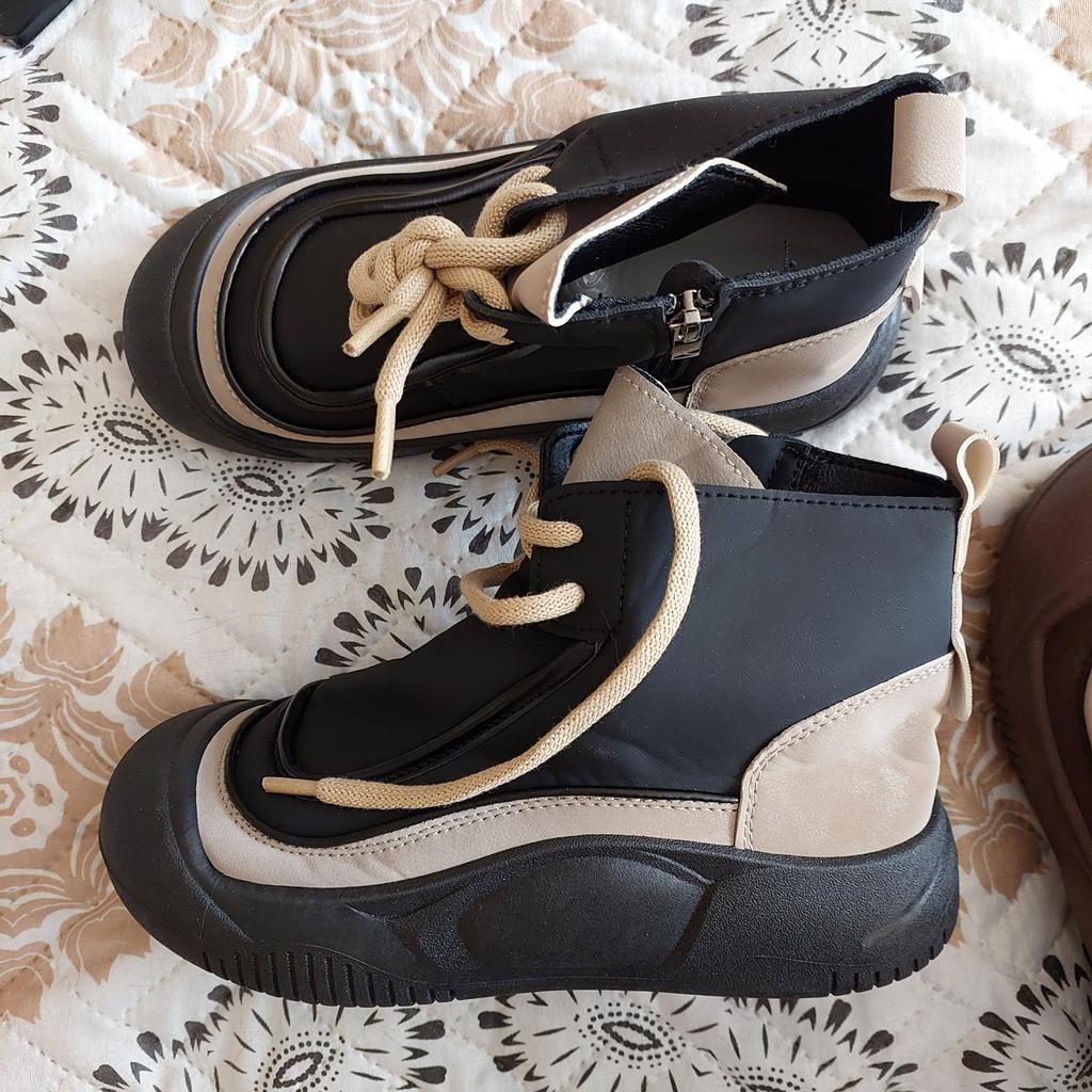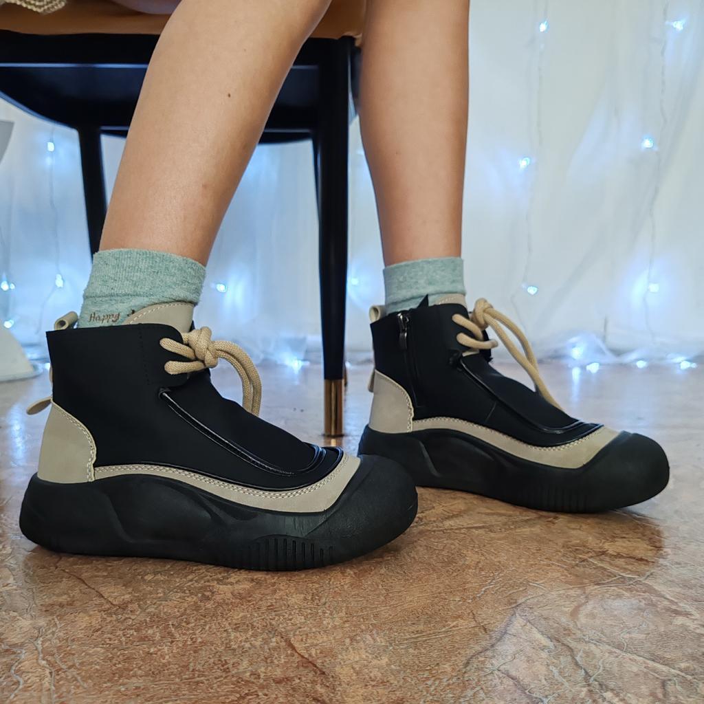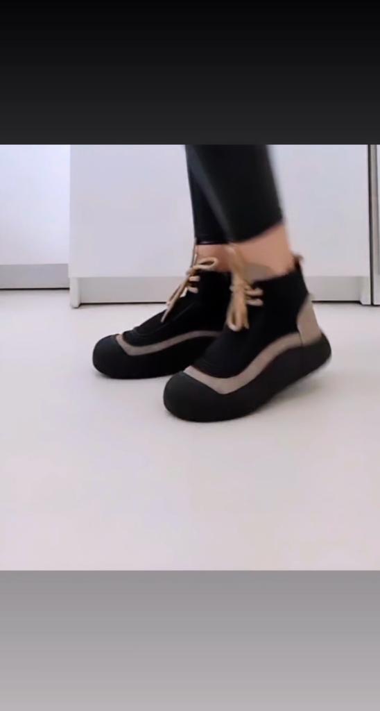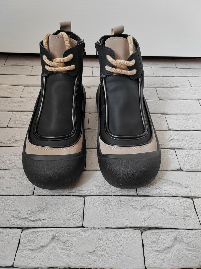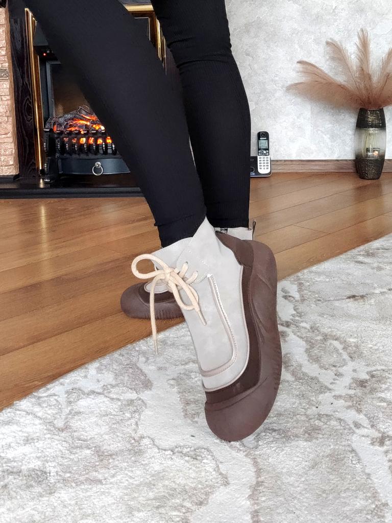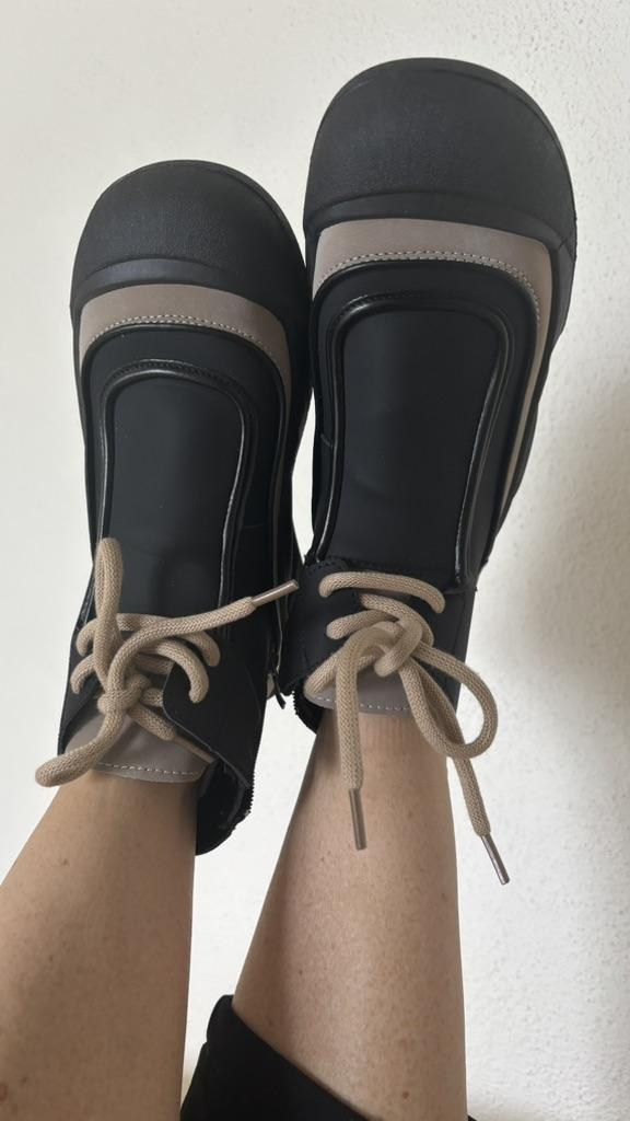Shoes in which you can walk in wet weather. Stylish and practical . Designed for autumn and spring. They are pleasant to the touch and the feet are comfortable in them. I especially recommend taking a closer look at these shoes for those who have dogs. If the weather is wet, these are great shoes because your feet will be dry. I took the size 36 for my 36. If you have a wide foot, most likely the leg will be difficult to enter. There is a lacing, but it will not stretch very much. They fasten on a snake on the side. The quality is excellent ♥️ I liked the design, unusual 👍
