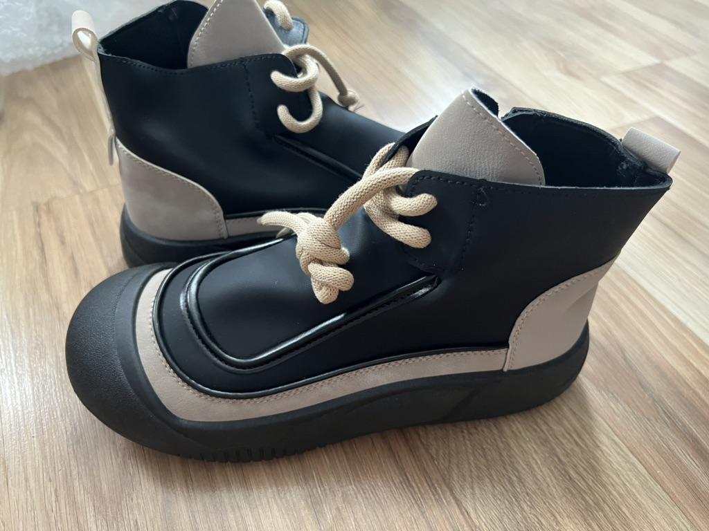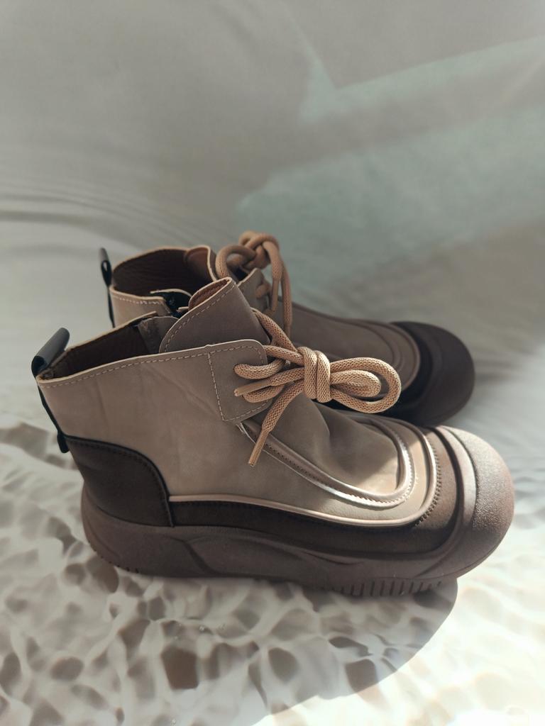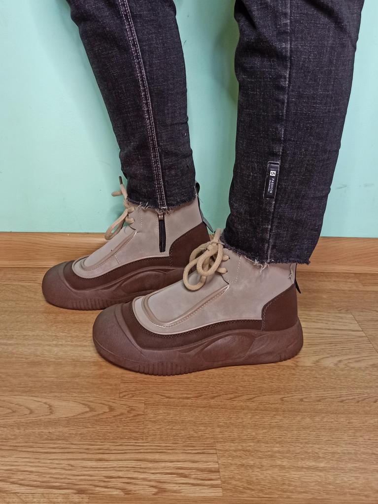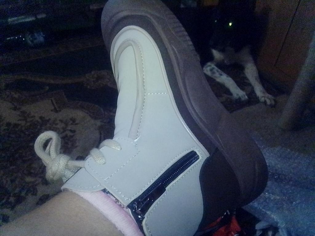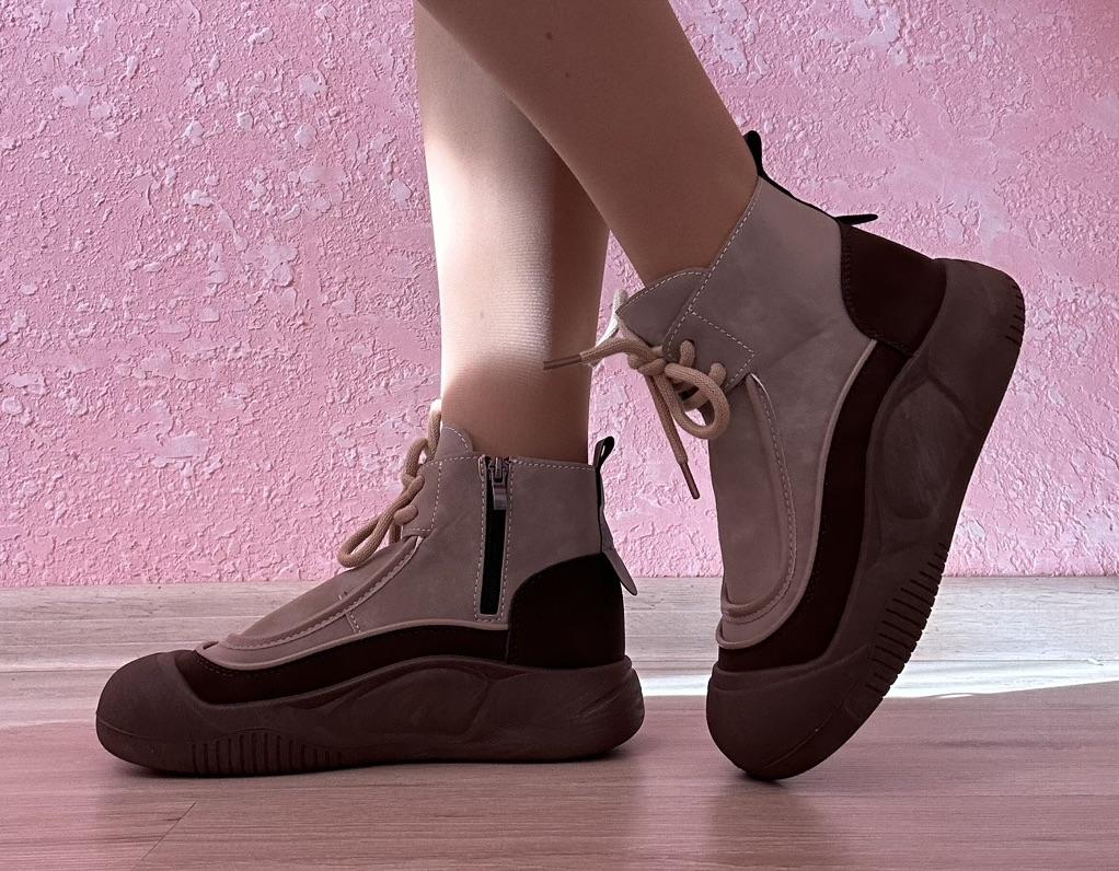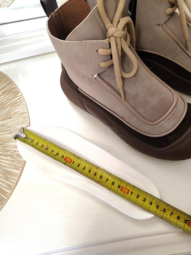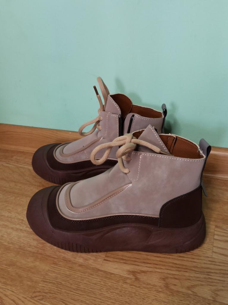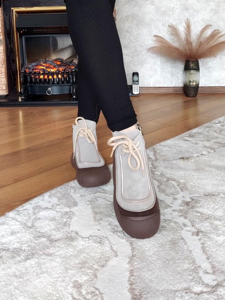 Shoes in which you can walk in wet weather. Stylish and practical . Designed for autumn and spring. They are pleasant to the touch and the feet are comfortable in them. I especially recommend taking a closer look at these shoes for those who have dogs. If the weather is wet, these are great shoes because your feet will be dry. I took the size 36 for my 36. If you have a wide foot, most likely the leg will be difficult to enter. There is a lacing, but it will not stretch very much. They fasten on a snake on the side. The quality is excellent ♥️ I liked the design, unusual 👍