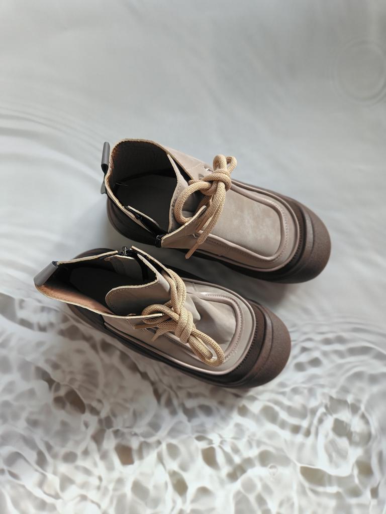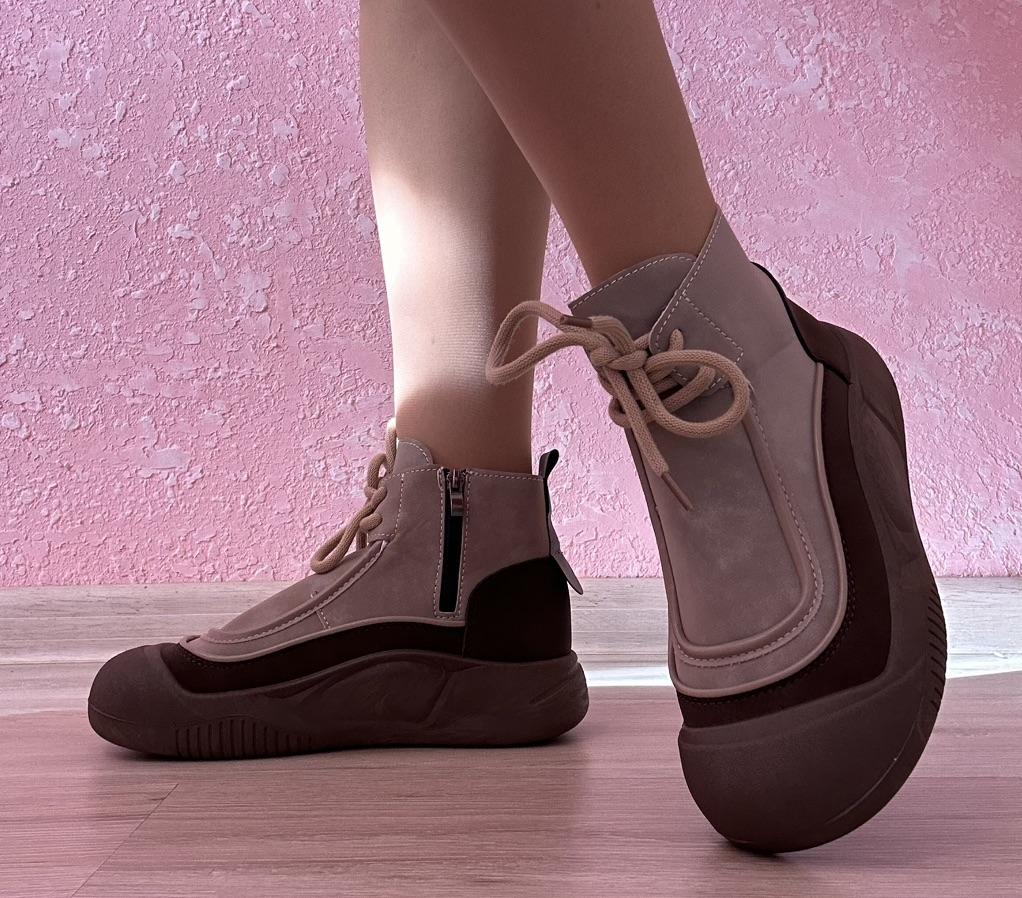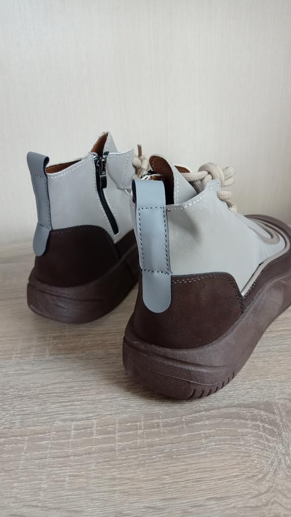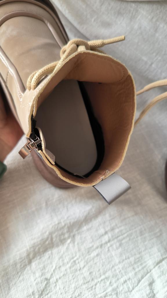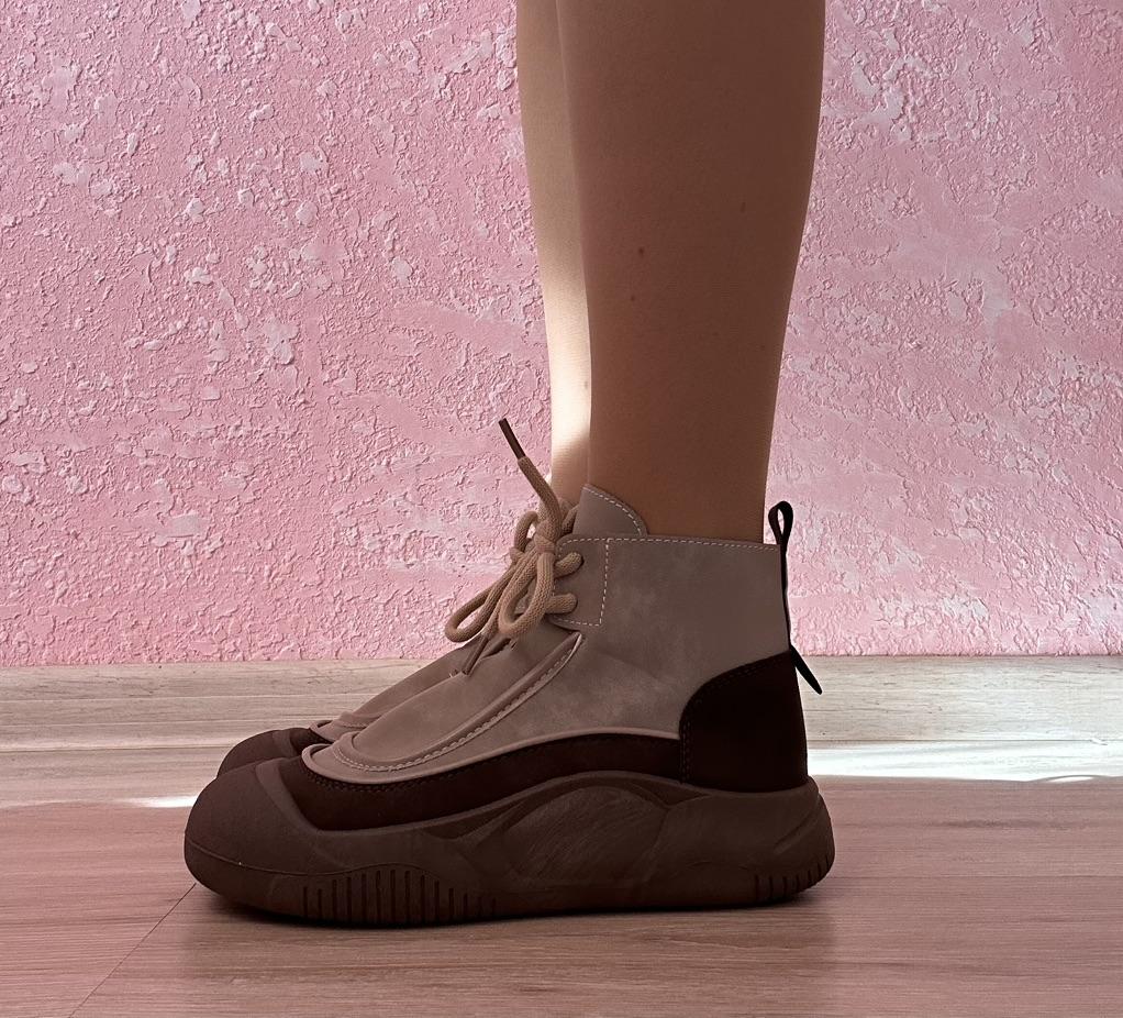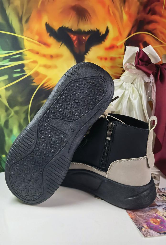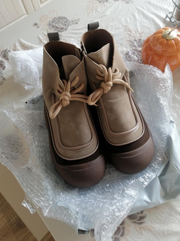 Shoes in which you can walk in wet weather. Stylish and practical . Designed for autumn and spring. They are pleasant to the touch and the feet are comfortable in them. I especially recommend taking a closer look at these shoes for those who have dogs. If the weather is wet, these are great shoes because your feet will be dry. I took the size 36 for my 36. If you have a wide foot, most likely the leg will be difficult to enter. There is a lacing, but it will not stretch very much. They fasten on a snake on the side. The quality is excellent ♥️ I liked the design, unusual 👍