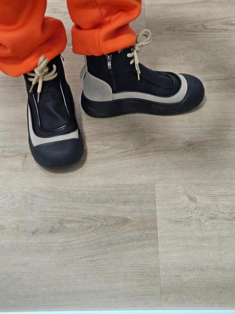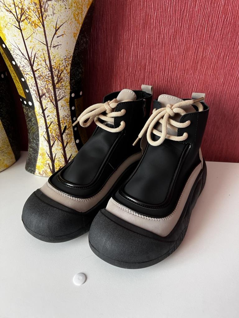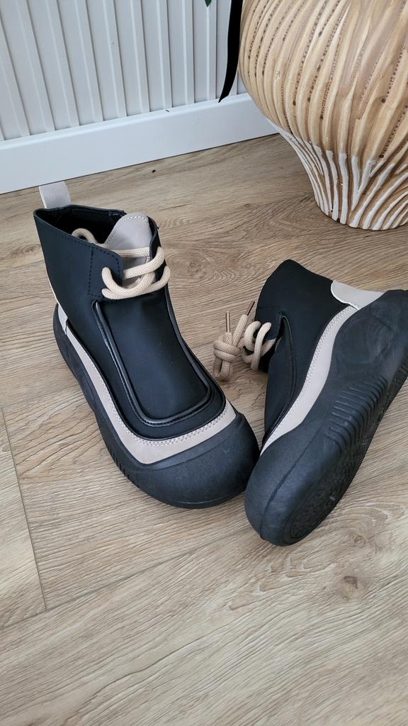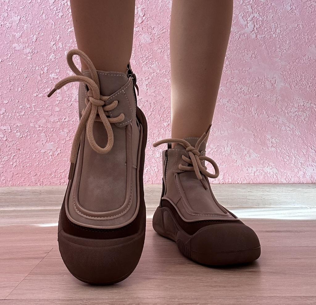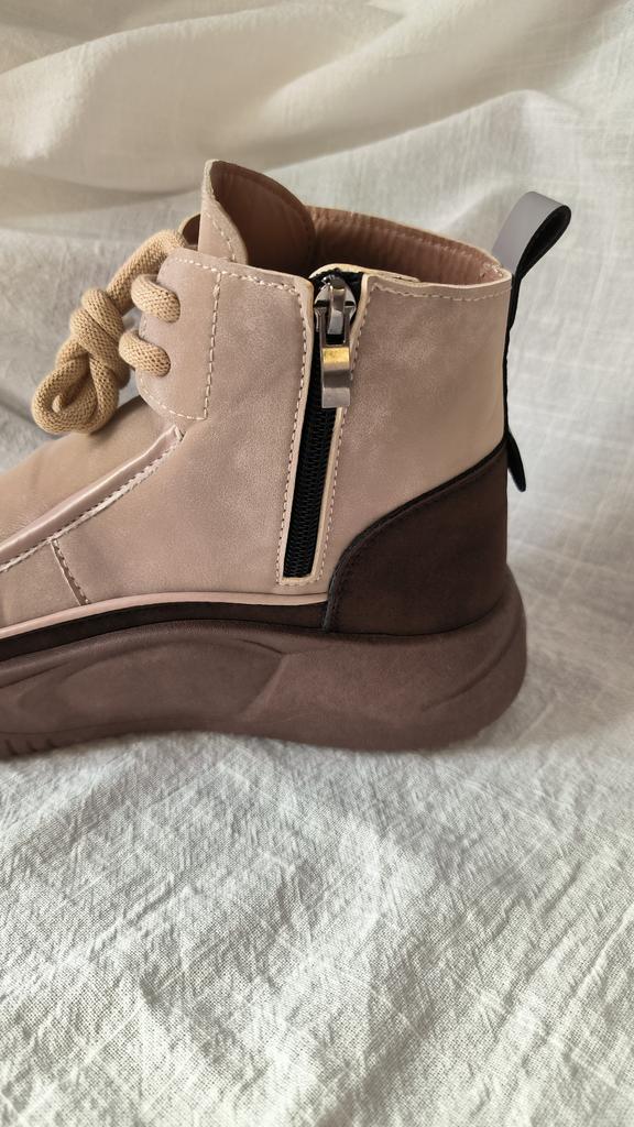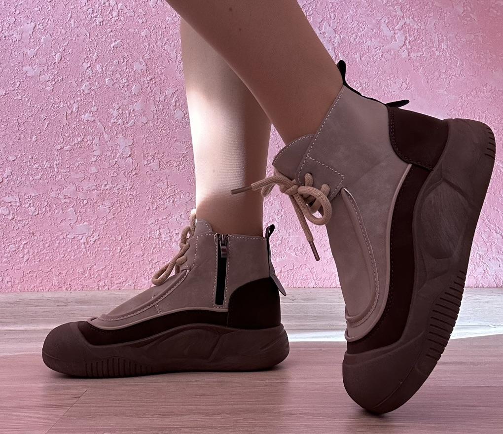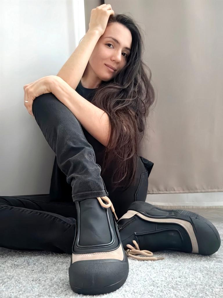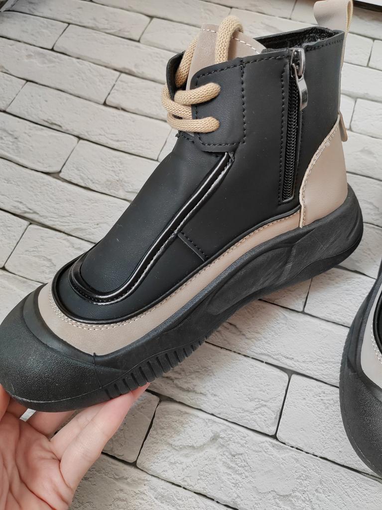 Shoes in which you can walk in wet weather. Stylish and practical . Designed for autumn and spring. They are pleasant to the touch and the feet are comfortable in them. I especially recommend taking a closer look at these shoes for those who have dogs. If the weather is wet, these are great shoes because your feet will be dry. I took the size 36 for my 36. If you have a wide foot, most likely the leg will be difficult to enter. There is a lacing, but it will not stretch very much. They fasten on a snake on the side. The quality is excellent ♥️ I liked the design, unusual 👍