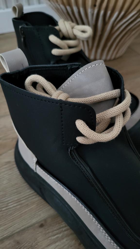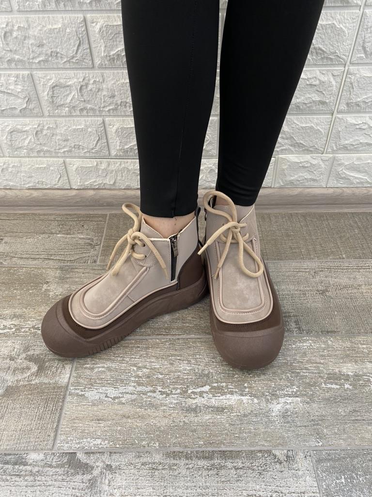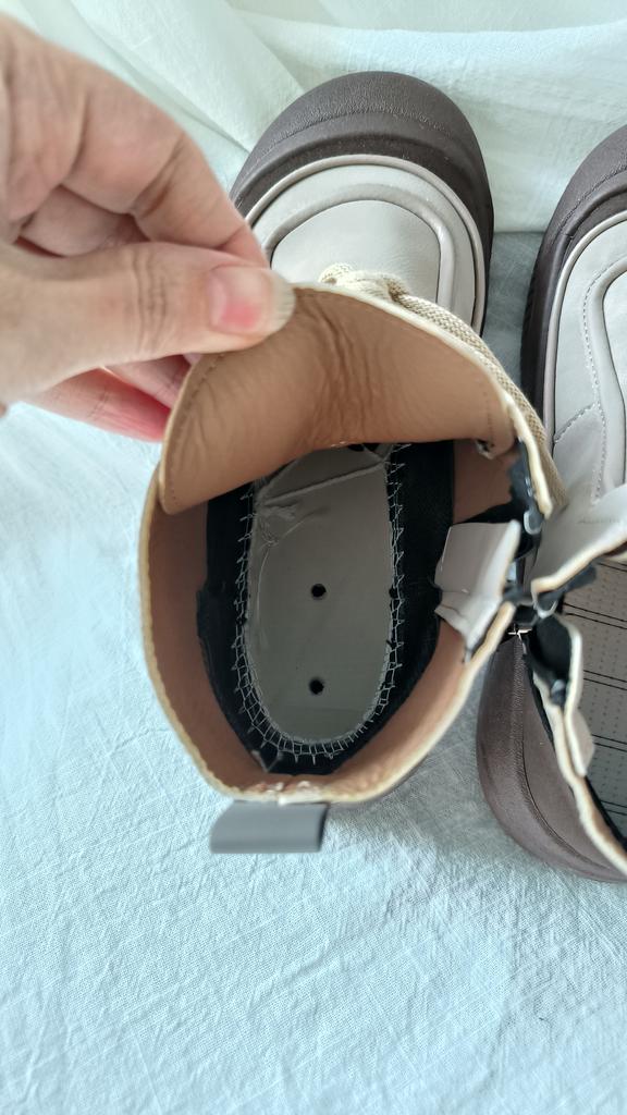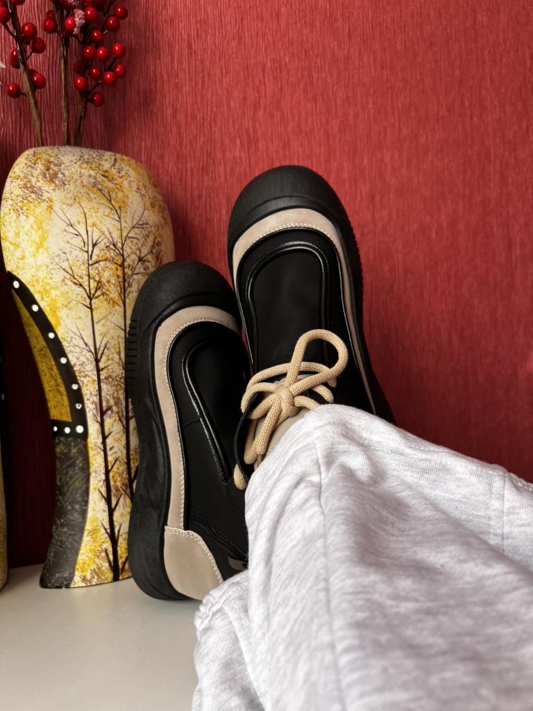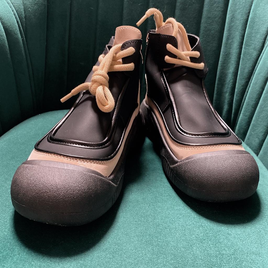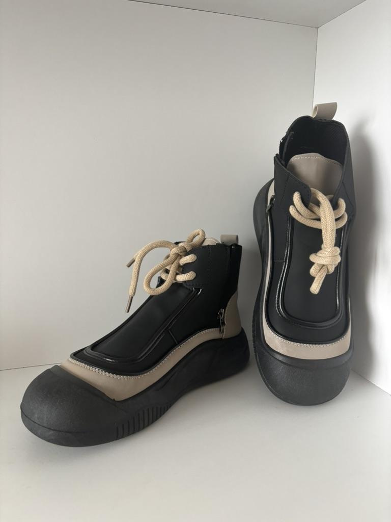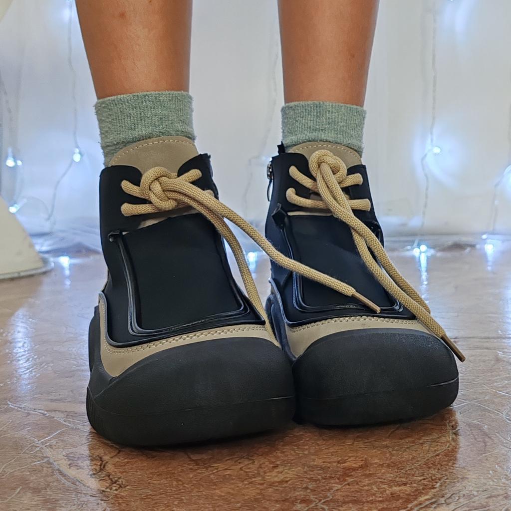Shoes in which you can walk in wet weather. Stylish and practical . Designed for autumn and spring. They are pleasant to the touch and the feet are comfortable in them. I especially recommend taking a closer look at these shoes for those who have dogs. If the weather is wet, these are great shoes because your feet will be dry. I took the size 36 for my 36. If you have a wide foot, most likely the leg will be difficult to enter. There is a lacing, but it will not stretch very much. They fasten on a snake on the side. The quality is excellent ♥️ I liked the design, unusual 👍