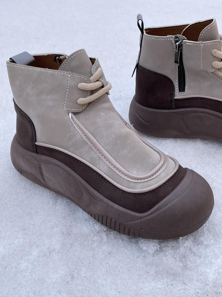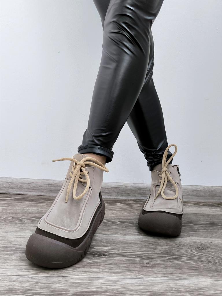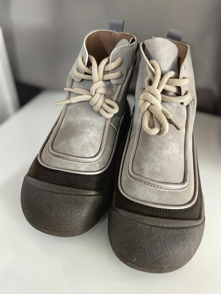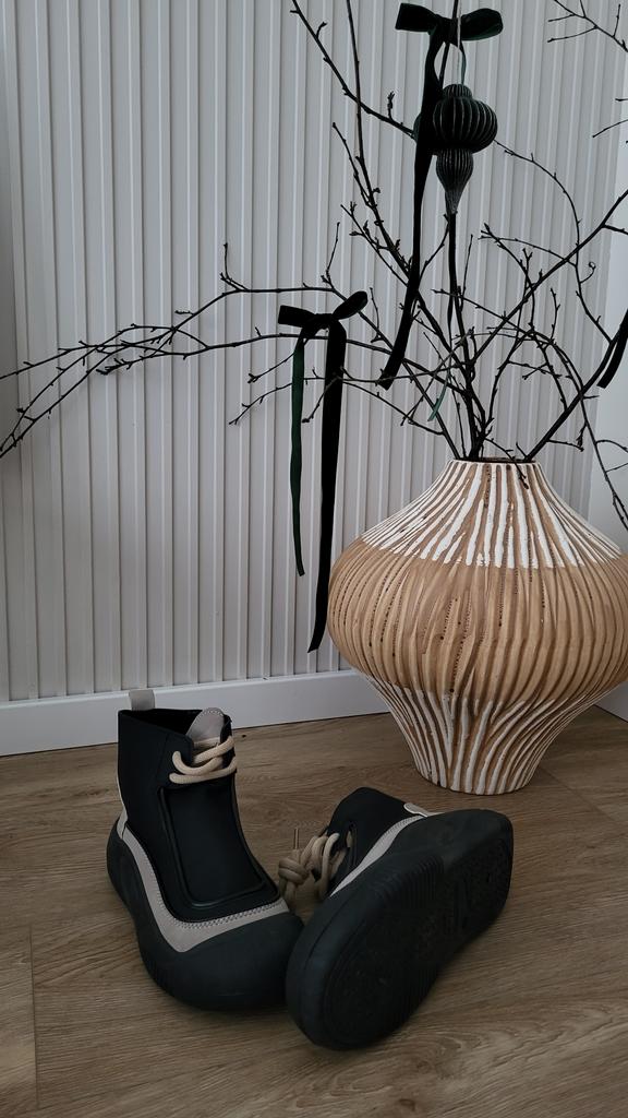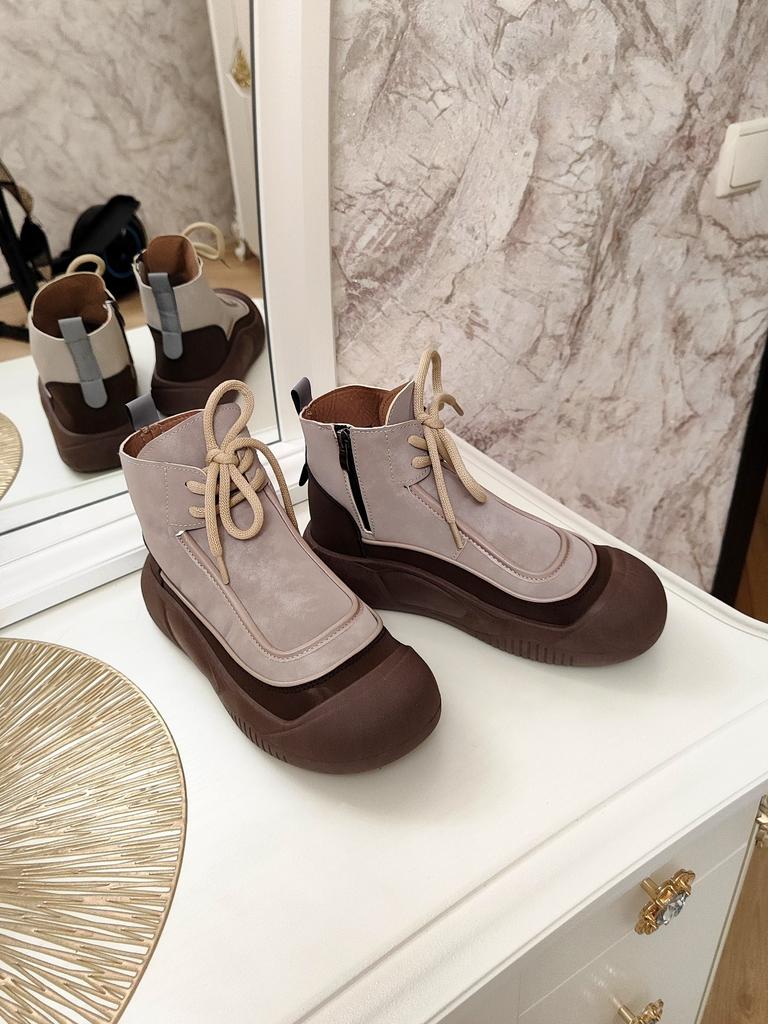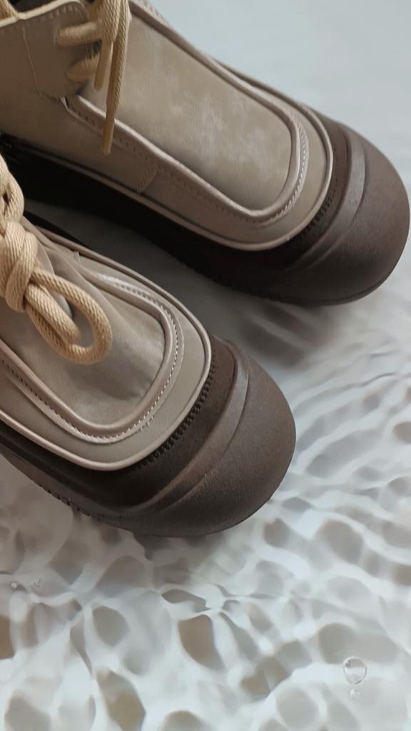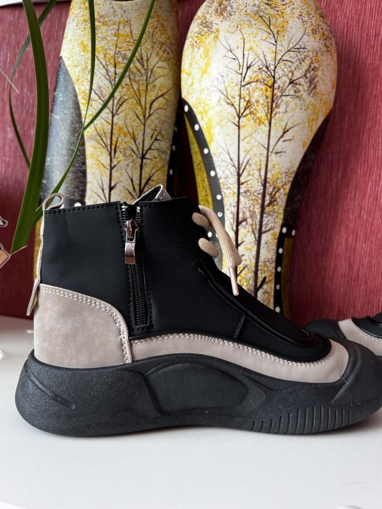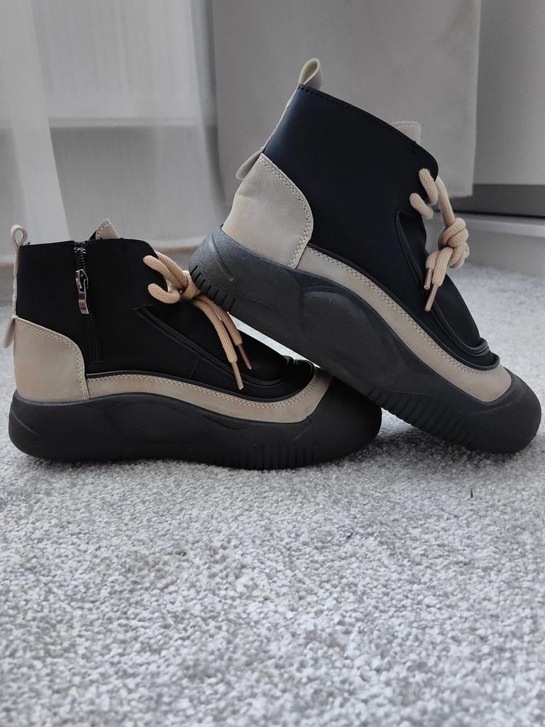 Shoes in which you can walk in wet weather. Stylish and practical . Designed for autumn and spring. They are pleasant to the touch and the feet are comfortable in them. I especially recommend taking a closer look at these shoes for those who have dogs. If the weather is wet, these are great shoes because your feet will be dry. I took the size 36 for my 36. If you have a wide foot, most likely the leg will be difficult to enter. There is a lacing, but it will not stretch very much. They fasten on a snake on the side. The quality is excellent ♥️ I liked the design, unusual 👍