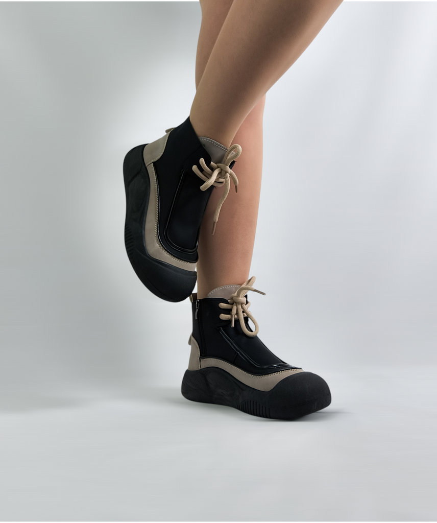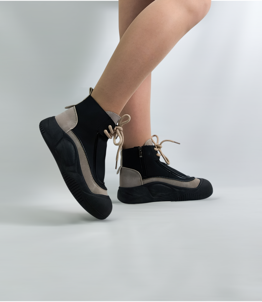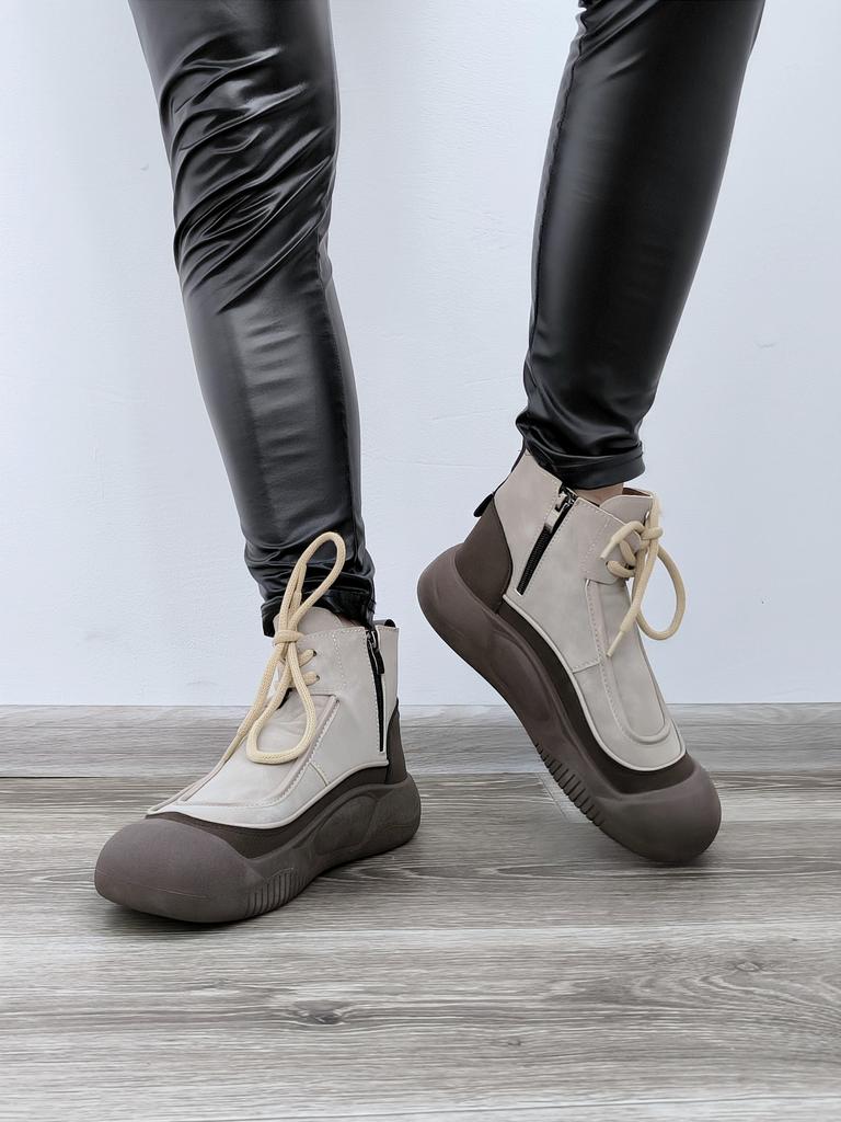 TUINANLE Women Spring Shoes High Top Sneakers Zip Black Shoes Woman Walking Chunky Sneakers