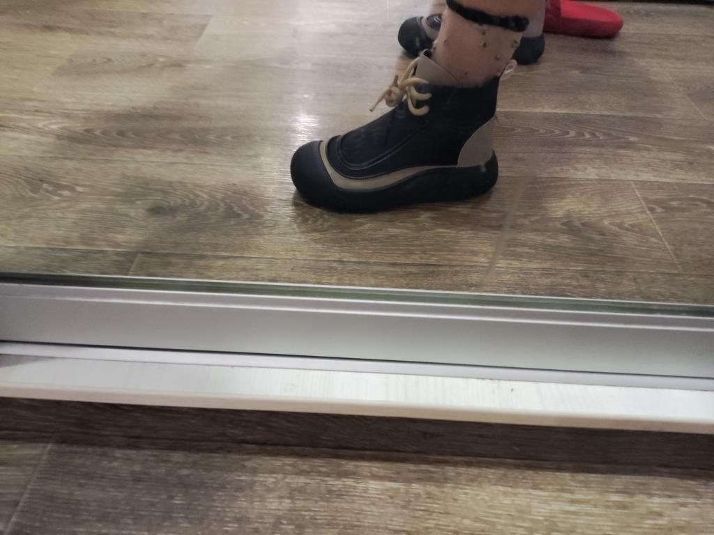 The model was visually pleasing. But...There is a very strong chemical smell.. For this reason, they didn't even try it on right away. The maximum size of the possible options was ordered.. + Stains on the textile part. On one boot - a crease... We put it out on the balcony for airing for now..
