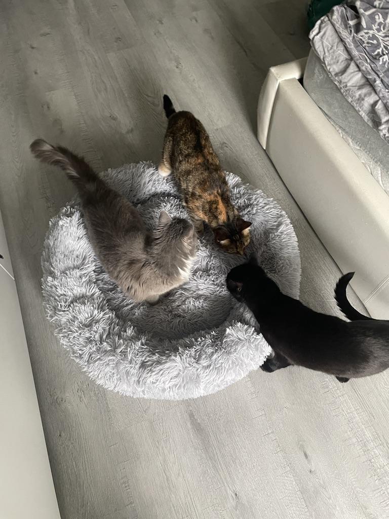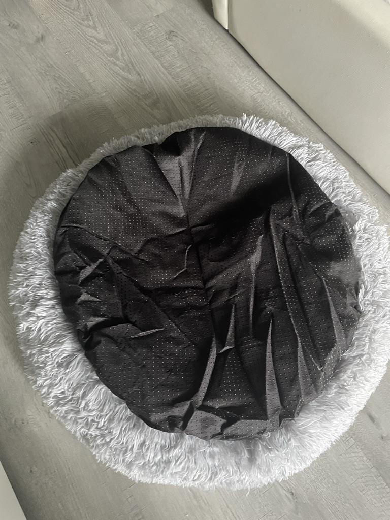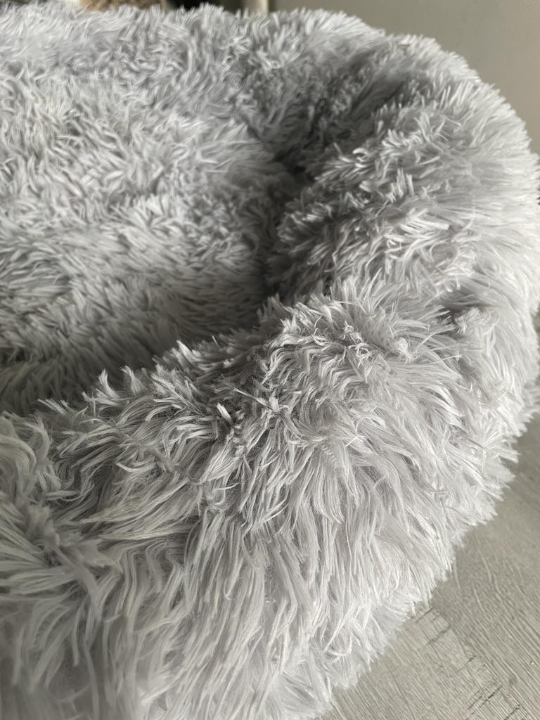 Cozy pet bed 🐈⬛ 🐕 I have it in dark gray, size L. Very soft, plush bagel. The villi are quite long and do not fall out. It’s not stuffed very tightly and this creates a kind of airy effect.. It was packed in a small package. You can't tell by looking that there's anything that big there. There was no smell when unpacking. To use it, it is important to shake out the crumpled filler.. I note that when pressed, the bed bends slightly. Some of my animals are scared by this, but others are fine with it. So the reaction is very individual.