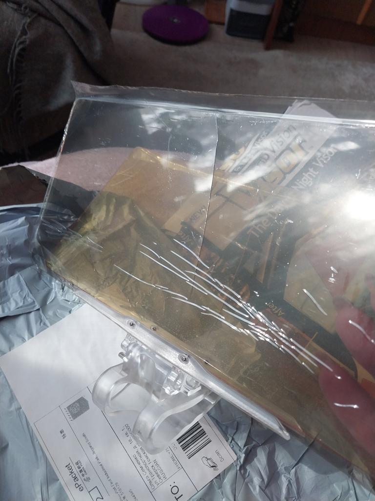 Damaged packaging. Yellow panel cracked. Very disappointed with the product.