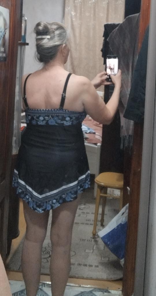 The swimsuit is gorgeous, the color is the same. The lines are even. In general, I'm satisfied, I recommend it. At 52-54 I took 3x, it fits well, it’s not tight, I don’t like it when it cuts into the body... it hides both the tummy and the sides.