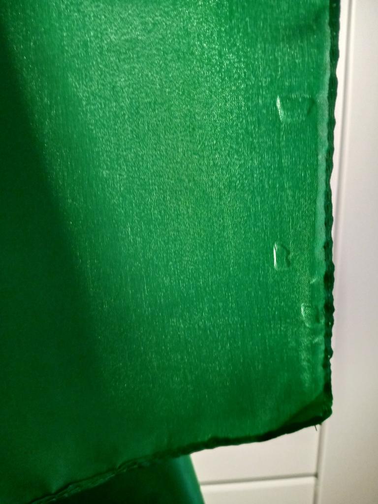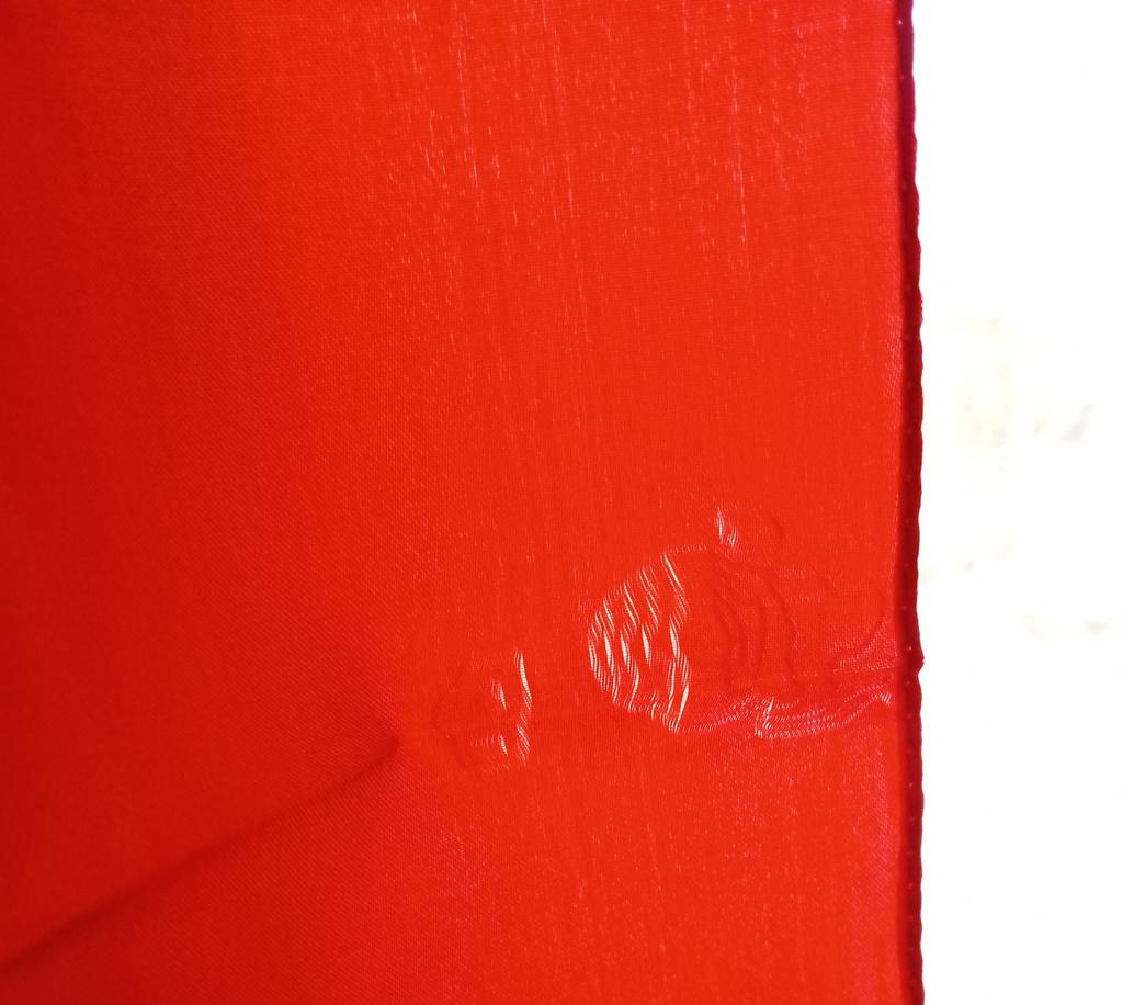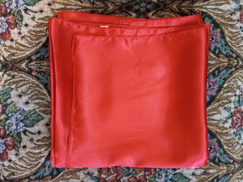 The color is bright red, the fabric is thin like satin