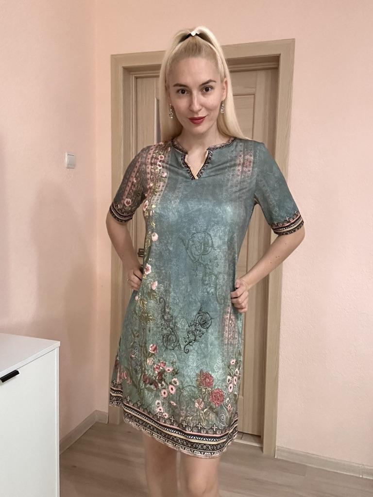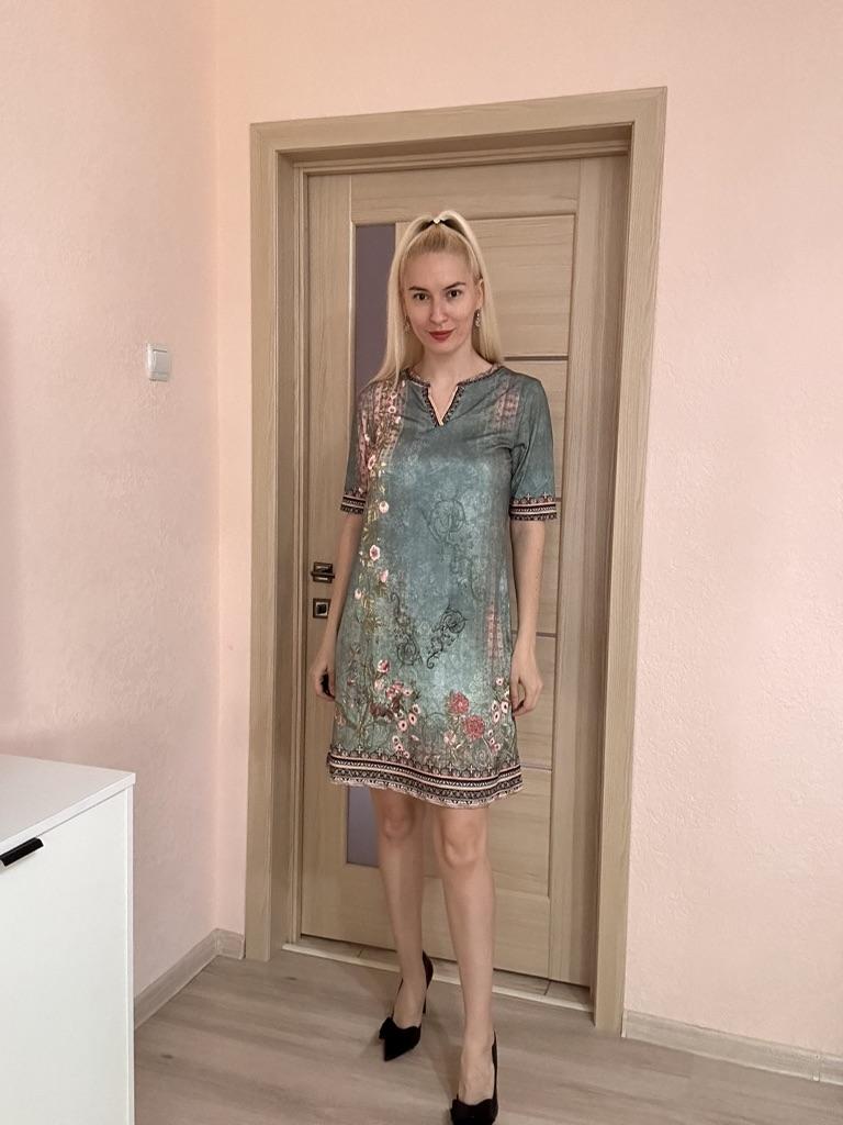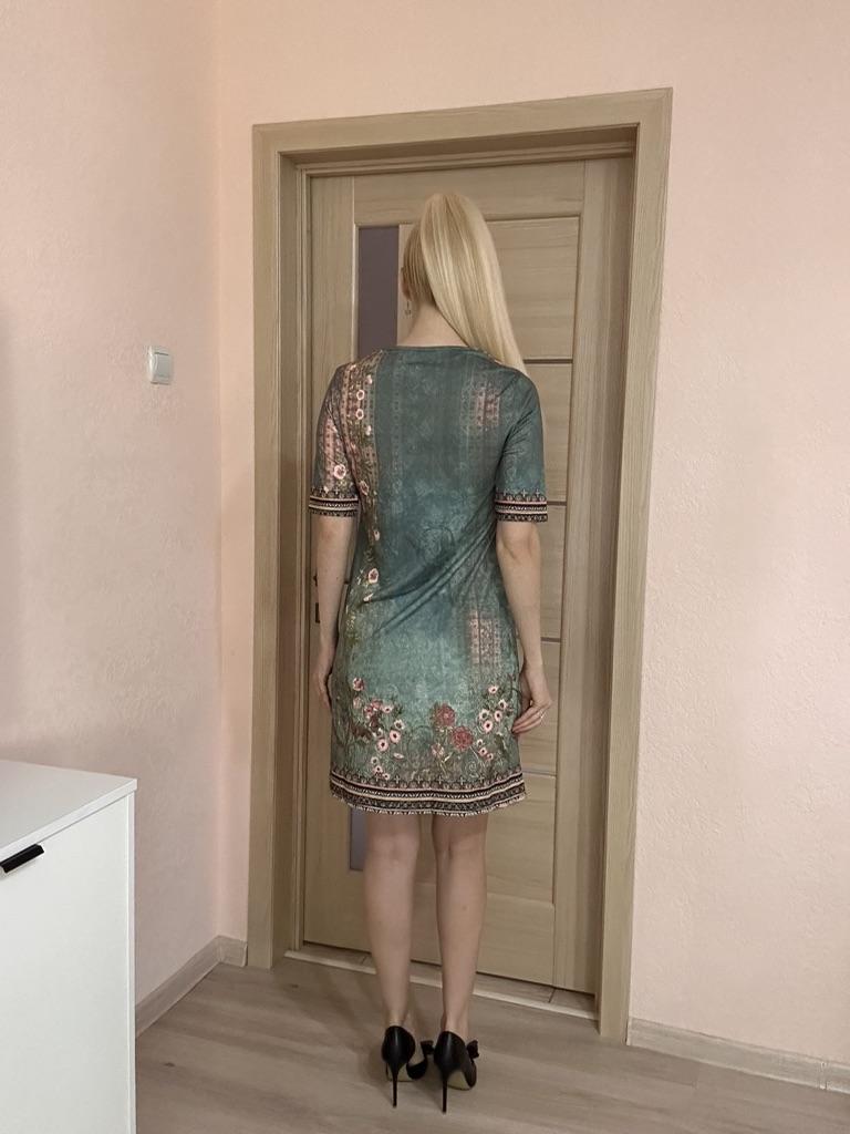 The size is just right. The dress is knitted for home, you can't wear it to the office. In the photo everything looks lovely, a festive dress, when I ordered I expected something like that. But no.