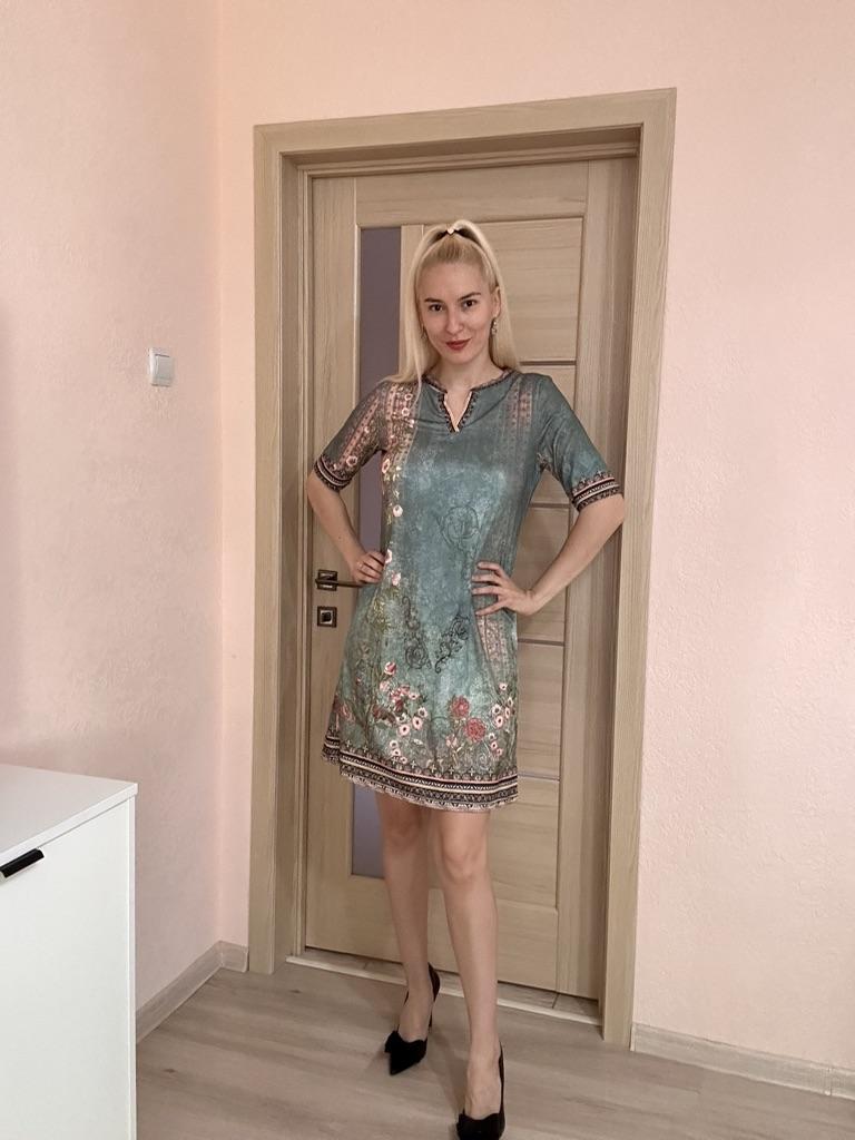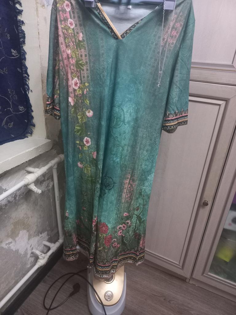 In the photo it looks like an evening dress, but in reality it is faded knitwear, more suited for home than for going out or to work. Don't waste your money on this "robe".