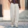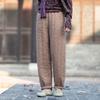 Johnature Women Vintage Warm Straight Pants Plus Cotton Winter Linen Trouser Elastic Waist Solid Color Women Soft Pants