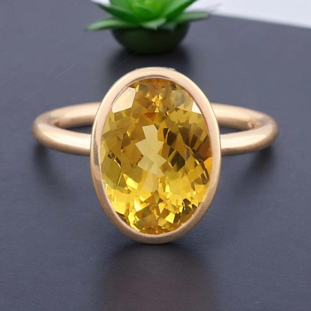 5.45 Carat Oval Cut Natural Yellow Sapphire 14K Yellow Gold Handmade Ring: