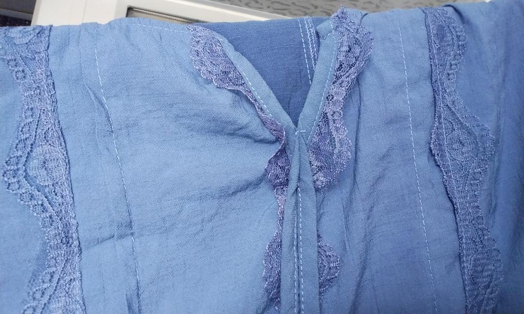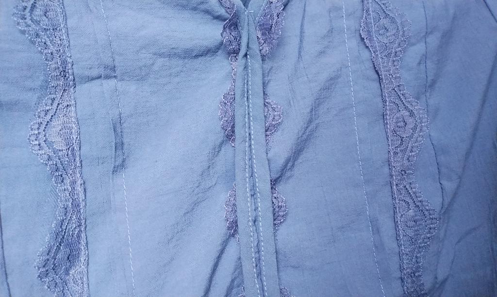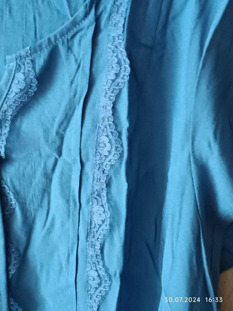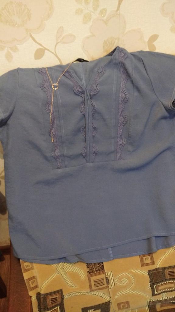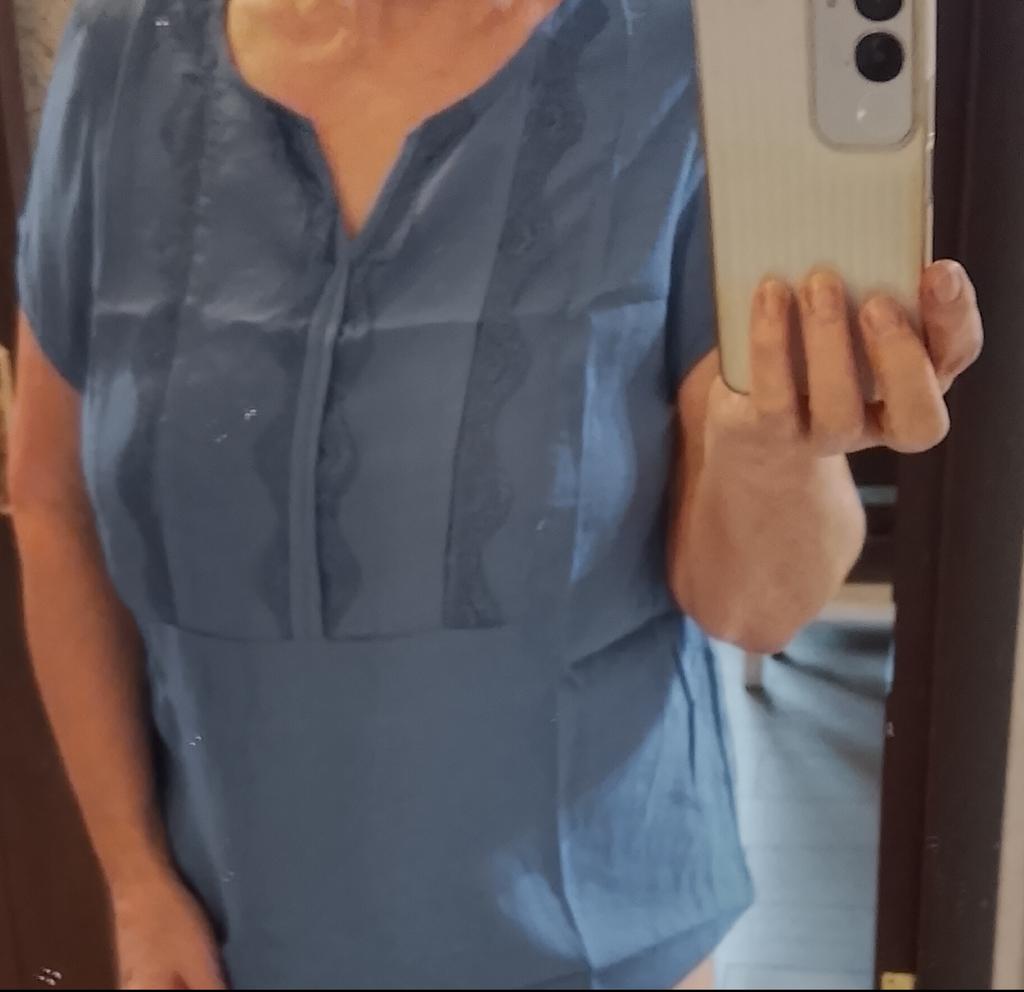 The blouse is not bad. Size 54. I just don't like synthetic lace.