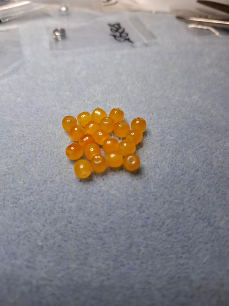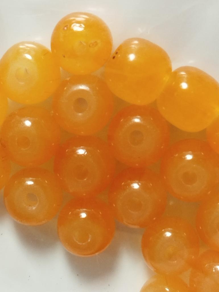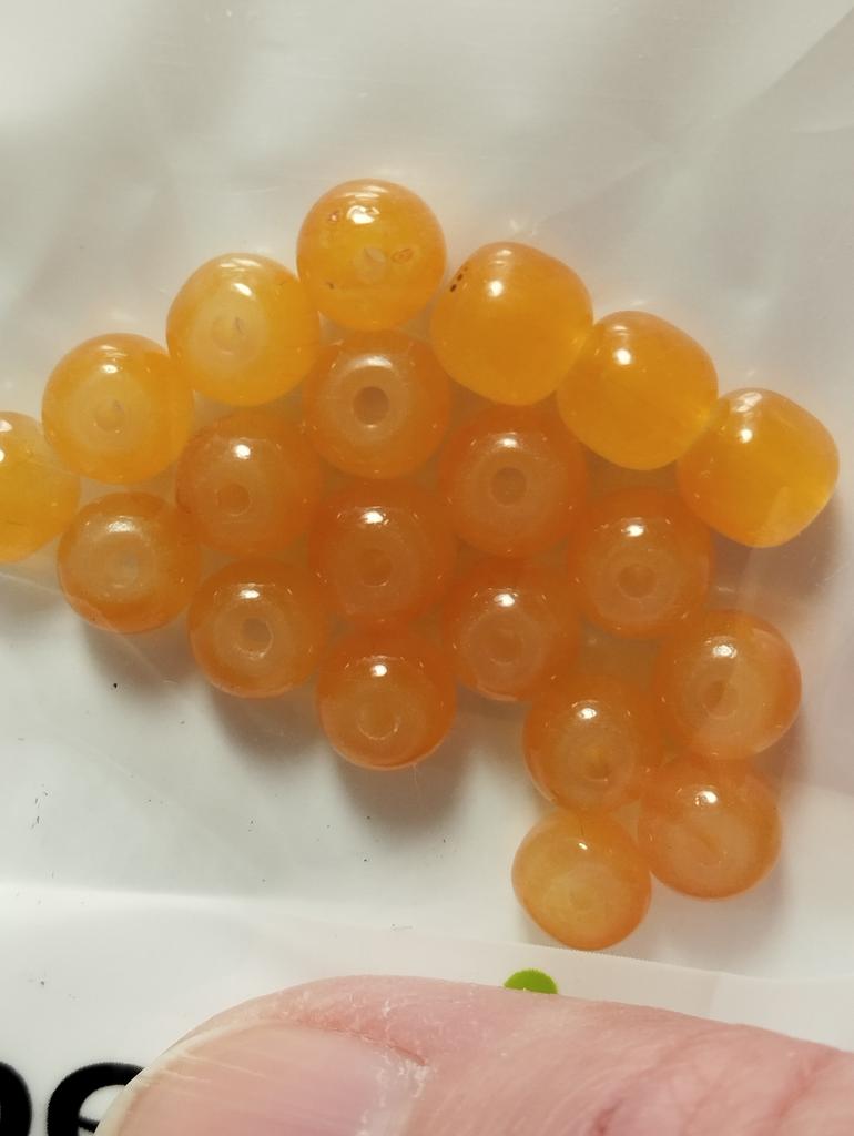 The beads are smooth, beautiful honey color. Not transparent. 20 pieces.