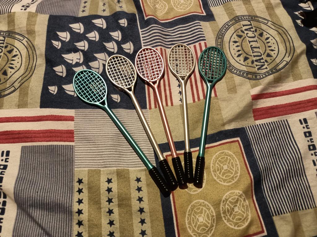 5PCS Creative Tennis Racquet Design Cute Kawaii Metal Color Neutral Pens for Kids School Gift DGYNIL0108C