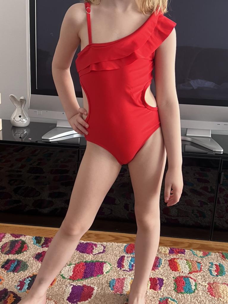 The swimsuit is cool, but too small for a 13-year-old, well, there will be nothing for a gift for a younger granddaughter, thank you Juma and the seller for the fast delivery