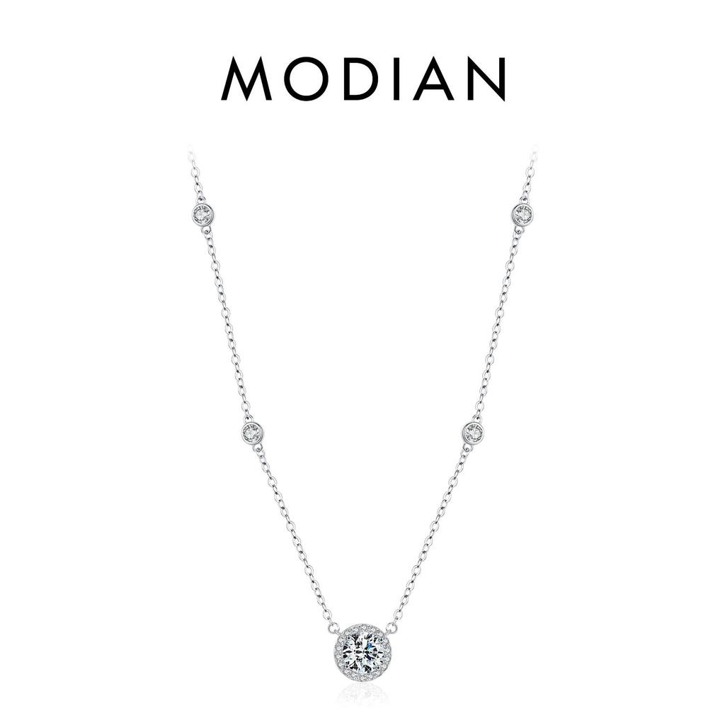 MODIAN 925 Sterling Silver Luxury Sparkling Round CZ Pendant Necklaces Wedding Link Chain Necklaces For Women Fine Jewelry Gifts