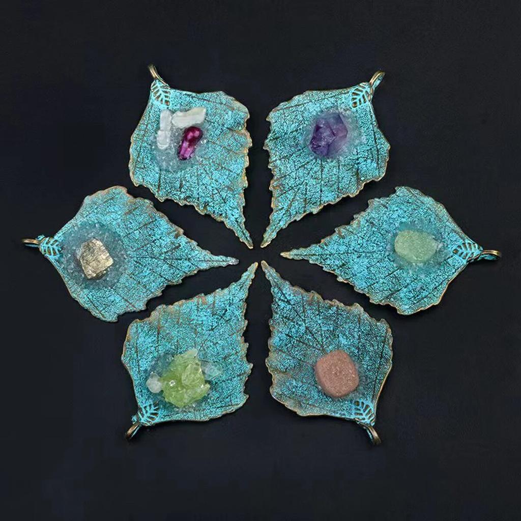 Women Pendant Natural Stone Crystal Zinc Alloy Leaf-Shaped Pendant For Jewelry Making DIY Necklace Accessory
